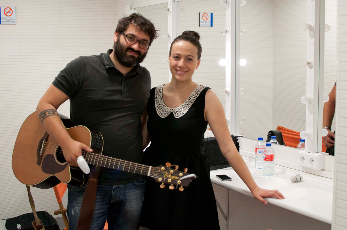 En los camerinos, María Villalón y Susi, guitarrista, preparándose para salir a escena.