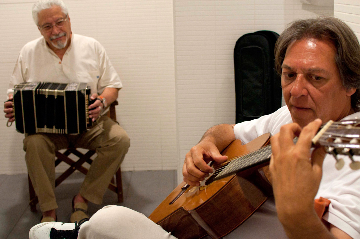 También en su camerino Doctor Tango practicando los últimos acordes antes de salir.