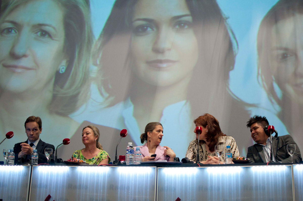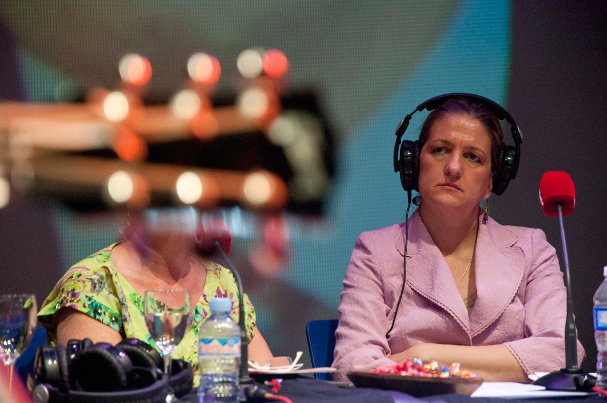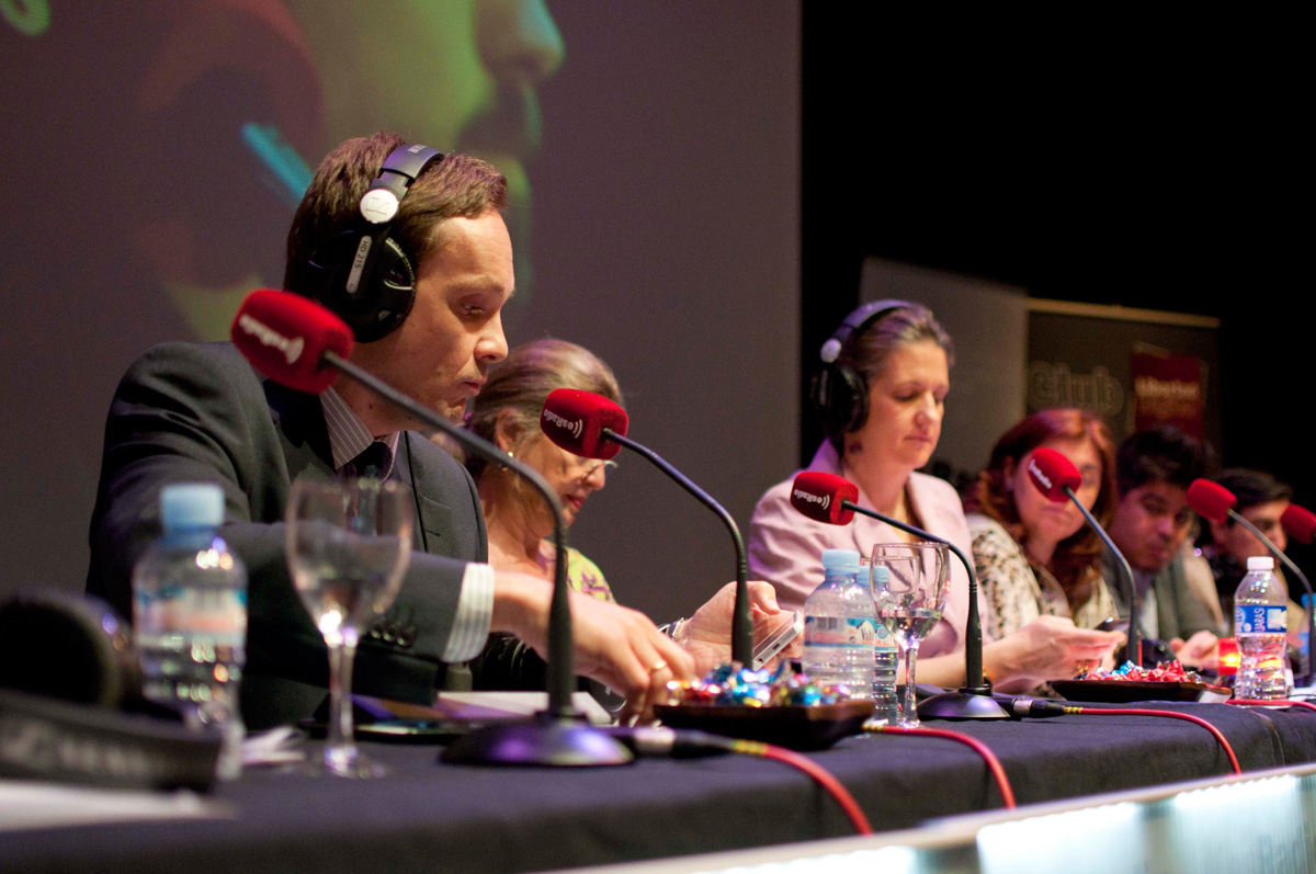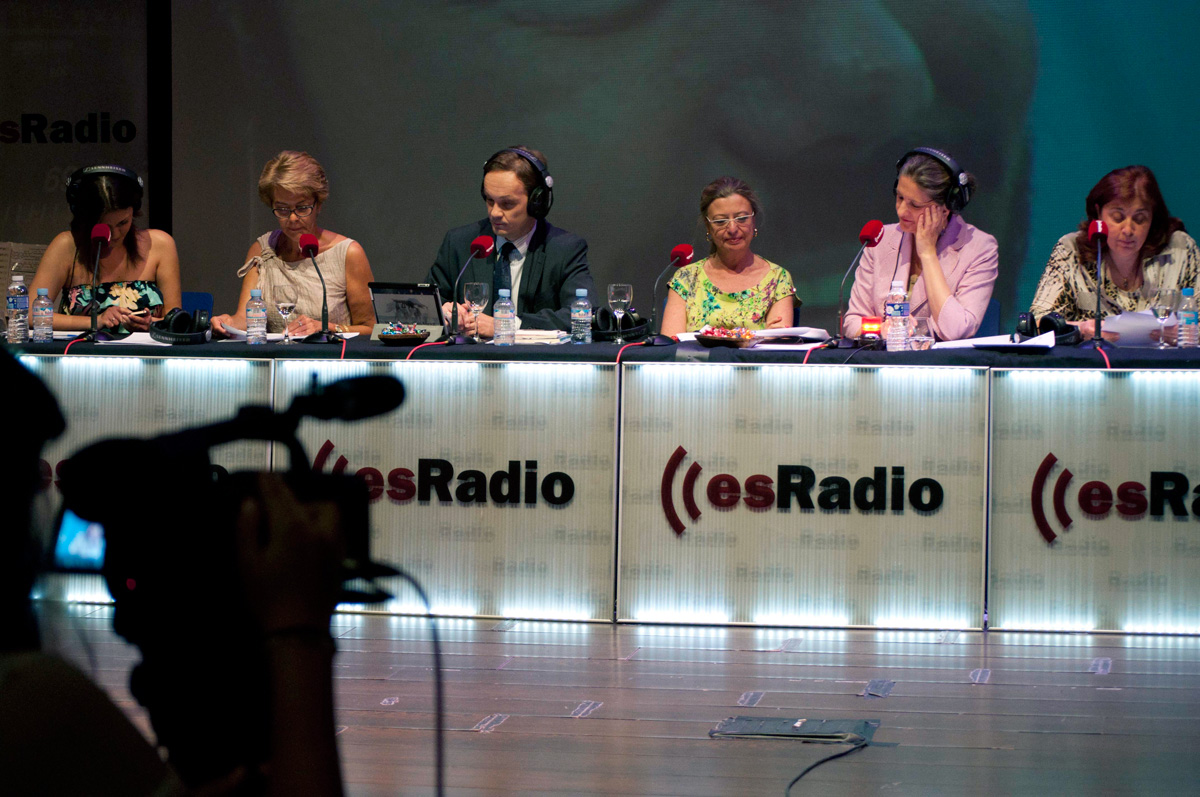 Un plano general de la mesa del programa. En el centro la directora María José Peláez.