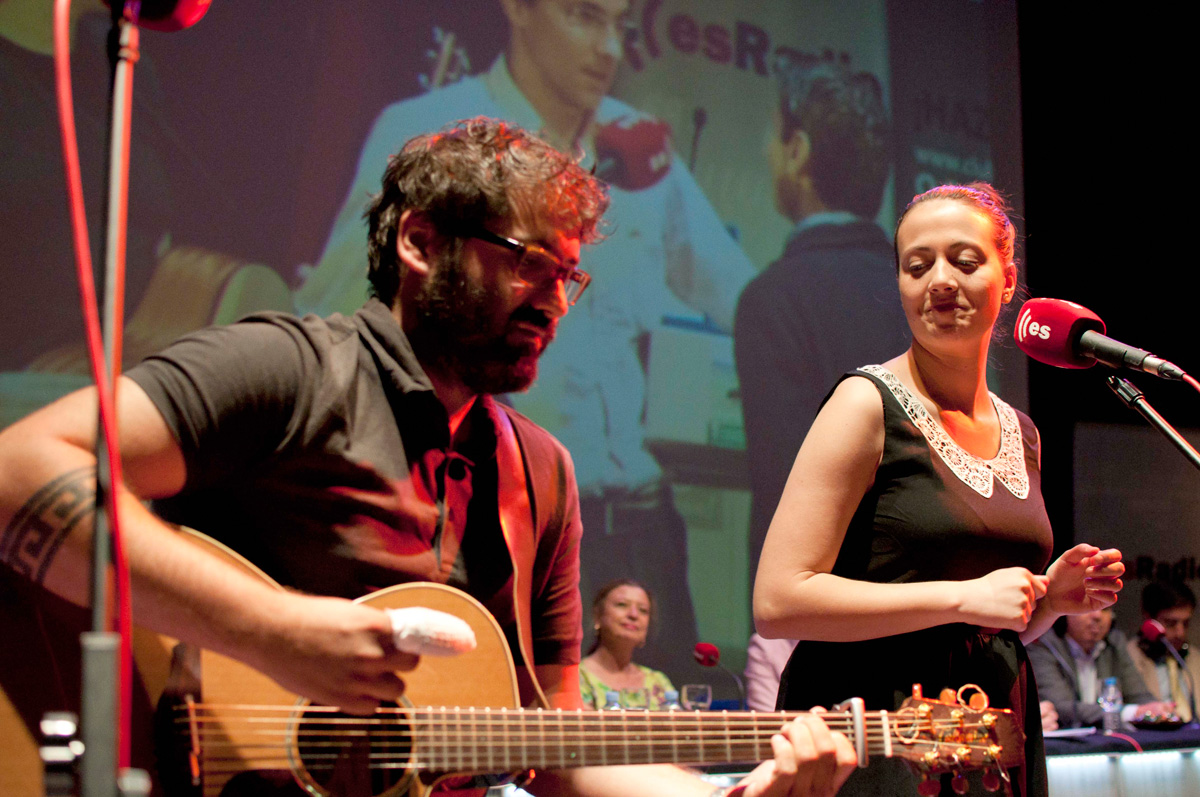 María José Peláez escucha con mucha atención la interpretación de Emilio Estéban.