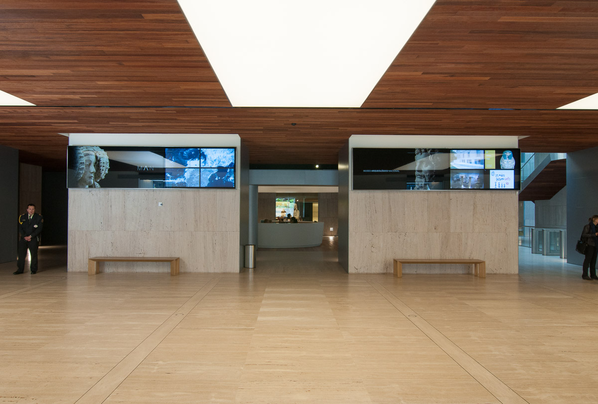 El vestíbulo, de modernísimas formas, es uno de los nuevos espacios creados. En palabras del director del MAN, Andrés Carretero, "en el antiguo se juntaban dos colegios y ya no sabías donde esconderte"