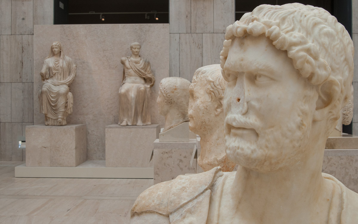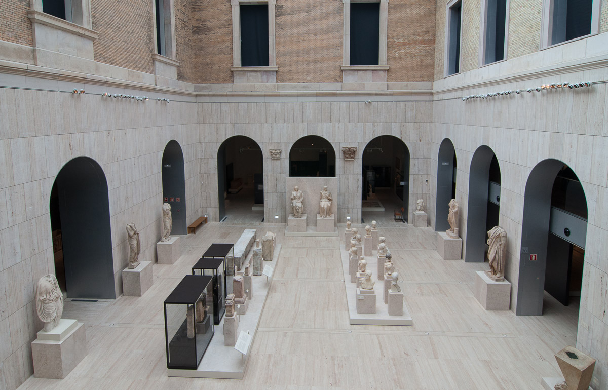 El patio de esculturas romanas tiene una imponente colección de esculturas y bustos