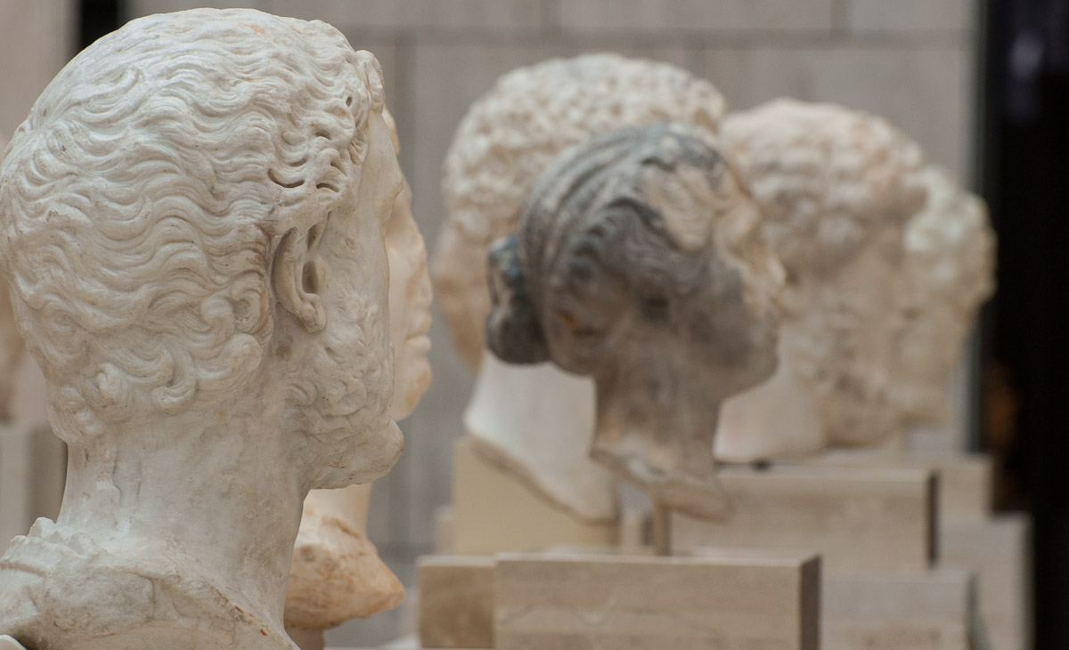 Otra imagen de las cabezas expuestas en el patio de escultura romana
