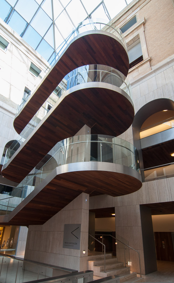 Otra de las espectaculares escaleras en metal, cristal y madera que dan acceso a las distintas plantas del MAN