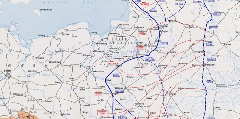 ¿Cómo fue posible que Rusia abandonara su tradicional cautela y se comportara durante los primeros meses de hostilidades con tanta temeridad? La pregunta es especialmente pertinente si se tiene en cuenta que el saliente polaco, esa franja amplia de territorio que se introducía como una cuña entre Alemania y Austria-Hungría, planteaba a Rusia un complicado dilema estratégico. El saliente, fruto del último reparto de Polonia en el siglo XIX, constituía para Rusia una oportunidad estratégica para una enérgica ofensiva, pues el extremo más occidental de la frontera ruso-alemana distaba tan sólo 300 kilómetros en línea recta de Berlín. Pero, al mismo tiempo que constituía una oportunidad, también conllevaba una grave debilidad. Al norte del saliente estaba la Prusia Oriental y al sur se hallaba la Galicia austriaca. Un ataque hacia el interior de Alemania descuidando la retaguardia corría el riesgo de dejar aisladas y rodeadas a las tropas que lo intentaran si, por detrás, austriacos y alemanes convergían en un movimiento Norte-Sur. Eso podría crear una enorme bolsa en la que quedarían atrapados los regimientos rusos del distrito de Varsovia. Es más, el peligro de verse rodeados y aislados del resto del ejército subsistía incluso en el caso de que no se desatara ofensiva alguna contra el corazón de Alemania. Desde el mismo momento del inicio de las hostilidades, las tropas acantonadas y movilizadas en aquel distrito estaban rodeadas de enemigos por tres lados. Si hubieran sido éstos capaces de cerrar el cuarto lado, el Este, todas ellas habrían quedado aisladas y rodeadas.