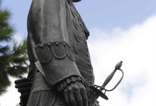 comentarios El Rey emérito descubrió la estatua del Mediohombre, el héroe español invicto, en los Jardines del Descubrimiento de la plaza madrileña de Colón.