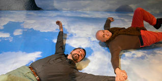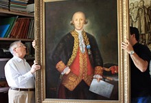 El autor, Carlos Monserrate (izquierda), sostiene el cuadro de Bernardo de Gálvez | Mª Cristina Monserrate
