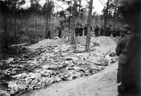 Pero la cuarta partición no solo destruyó el estado polaco y produjo la confiscación de las viviendas y las tierras para asentar en ellas a colonos alemanes. La sociedad polaca fue también físicamente aniquilada. Como relata Deighton los alemanes asesinaron sistemáticamente a profesores, médicos, eclesiásticos, terratenientes, funcionarios locales, aristócratas. Para el jefe de las SS, el psicópata Heydrich (que a su vez sería asesinado en Praga en 1942 por resistentes checos cuando era Reichsprotektor de Bohemia y Moravia) los niños polacos no deberían aprender a escribir y no deberían saber contar por encima de 500. Había que conseguir una mano de obra barata. La intelligentsia, la intelectualidad, debía desaparecer. Los Einsatzgruppen -batallones de exterminio de composición mixta (SS, Gestapo, Ordnungspolizei y milicias locales alemanas y ucranianas)- se encargaron de ello. En el primer año de la ocupación 60.000 civiles polacos fueron fusilados y sus cuerpos enterrados en fosas comunes, en el bosque de Kampino, en Skarzysko-Kamienna, en Radom, en Bromberg, etc.