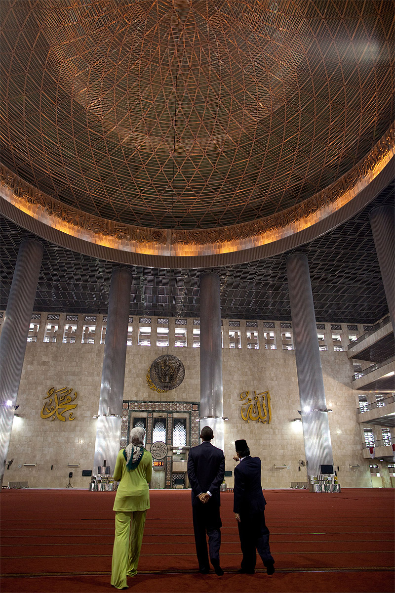 Terminada en 1978, esta mezquita de Jakarta es la mayor de Indonesia y fue un proyecto abordado tras la independencia del país como un gran emblema nacional. Resulta impresionante sobre todo en su interior, tal y como pudieron comprobar Michelle y Barack Obama cuando la visitaron en 2010, momento que recoge la imagen. Tiene capacidad para 120.000 personas