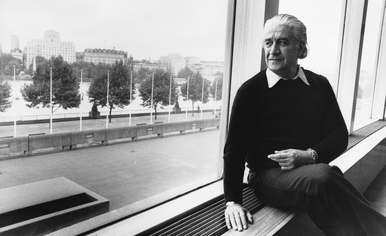 Casi todo era singular, en su biografía. Estudió música, filosofía y matemáticas en Bucarest y París. (Luego, además, budismo zen, que le influyó mucho). Comenzó a dirigir nada menos que a la Filarmónica de Berlín, en 1945, cuando Furtwangler fue suspendido, por su pasado nazi. Dirigió luego a la Orquesta de Estocolmo y a la Filarmónica de Munich, sucediendo a Kempe: la llevó a un puesto primerísimo pero también mantuvo una batalla de doce años para echar a un trombonista...