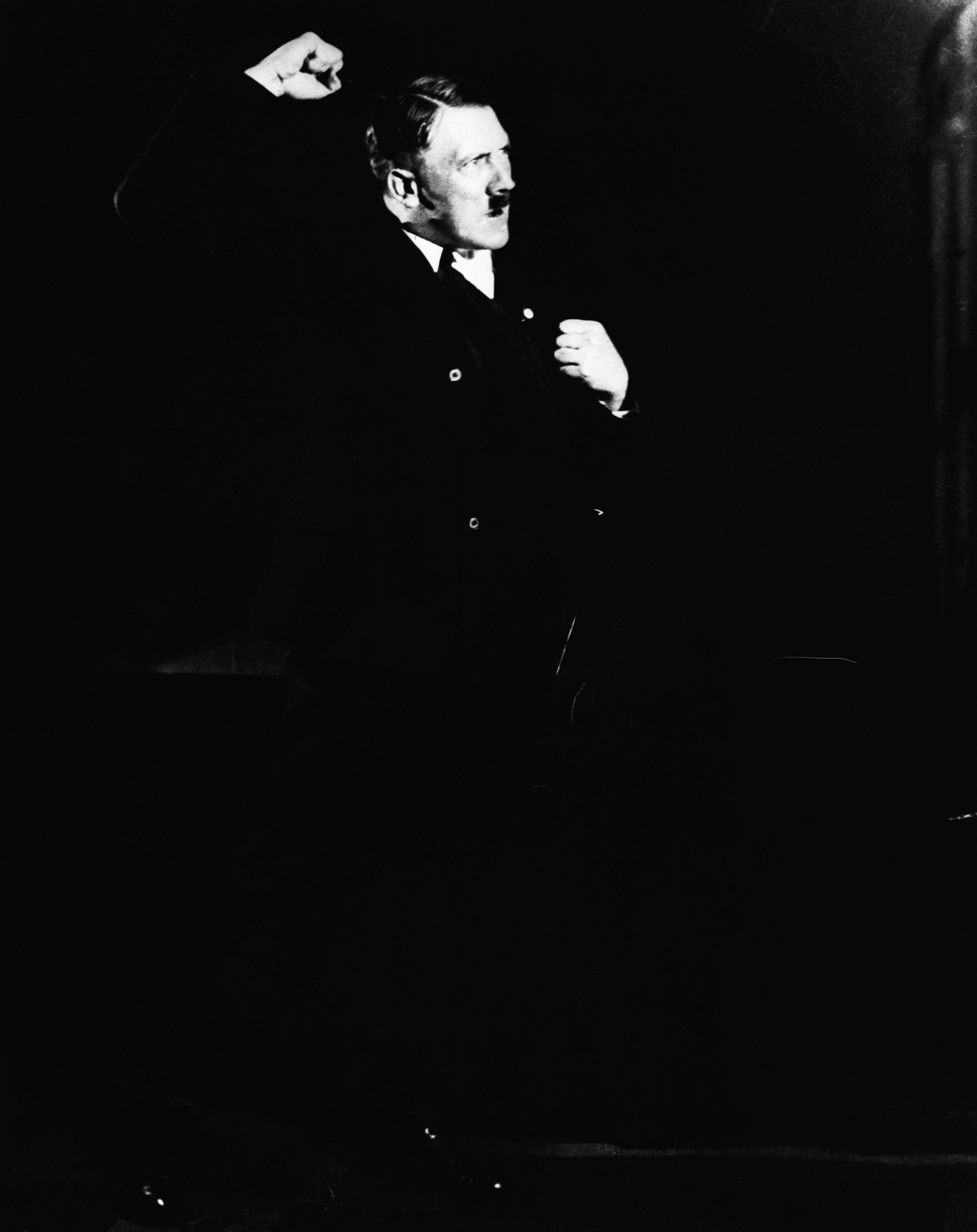 Las fotografías fueron tomadas por Henrich Hoffman en 1925 y se han mantenido durante muchos años en colecciones privadas. Hitler ensaya sus posturas para mejorar su oratoria. Aparece como loco, señalando a un público imaginario.