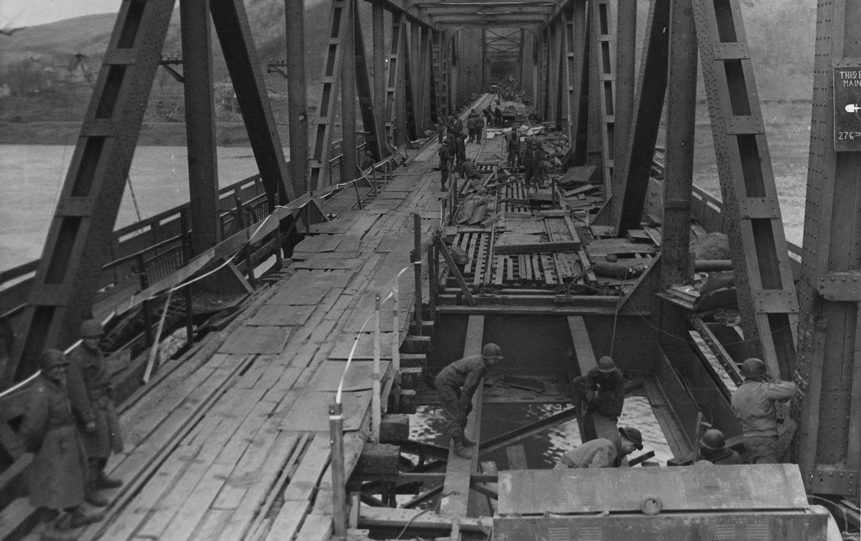 Así las cosas, el 7 de marzo -ahora se cumplen 70 años- una unidad de infantería acorazada del Primer Ejército norteamericano (Hodges) que avanzaba hacia el sur por la ribera izquierda del Rin a la altura de Remagen, 30 Km. aguas arriba desde Bonn, se encontró con un puente de ferrocarril que cruzaba el río, el Puente Luddendorf, y que aparentaba mantenerse intacto. Rápidamente los atacantes (División de Infantería Acorazada nº 9) tomaron el puente al asalto, sin dar tiempo a que los alemanes del Séptimo Ejército (Branderberger) hicieran explosionar las principales cargas. Los norteamericanos pisaban los talones a los alemanes e ignoraban cuántos eran éstos y de qué calidad eran las tropas (se trataba de Volksturm o milicia local). Podía, ciertamente, tratarse de una trampa pero también era una ocasión única que no cabía desaprovechar.