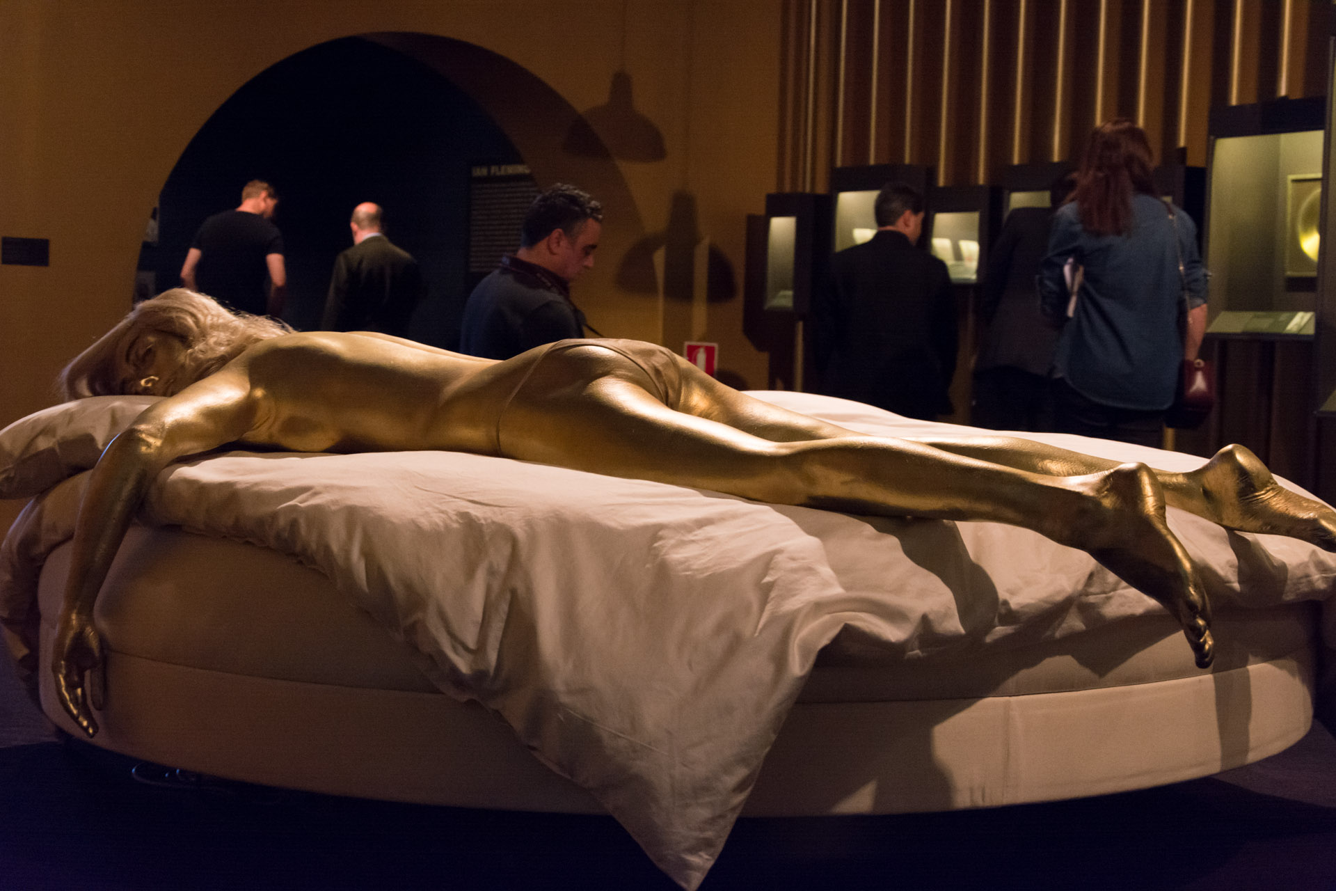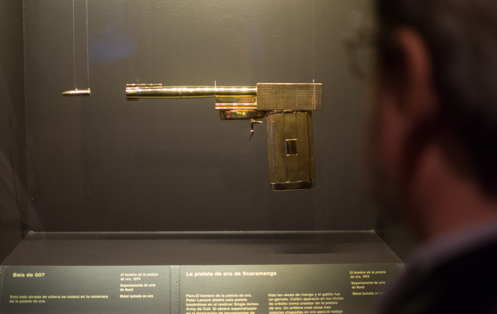 Entrar a través del interior del cañón de la pistola de James Bond en la exposición es un buen comienzo.