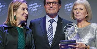 Giménez Bartlett con su premio, acompañada de Pastor y Mas | EFE Giménez Bartlett, Planeta 2015 con un jersey de 'merde' J. F. Úbeda Adiós a Cataluña en caso de ruptura