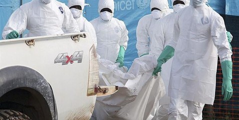 Trabajadores sanitarios retiran el cuerpo de una víctima en Liberia | Archivo 'Ébola': historia de un virus letal e imprevisible J. F. Úbeda