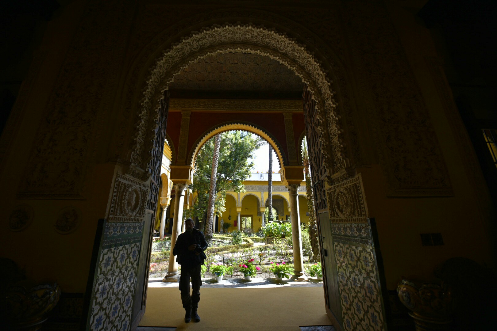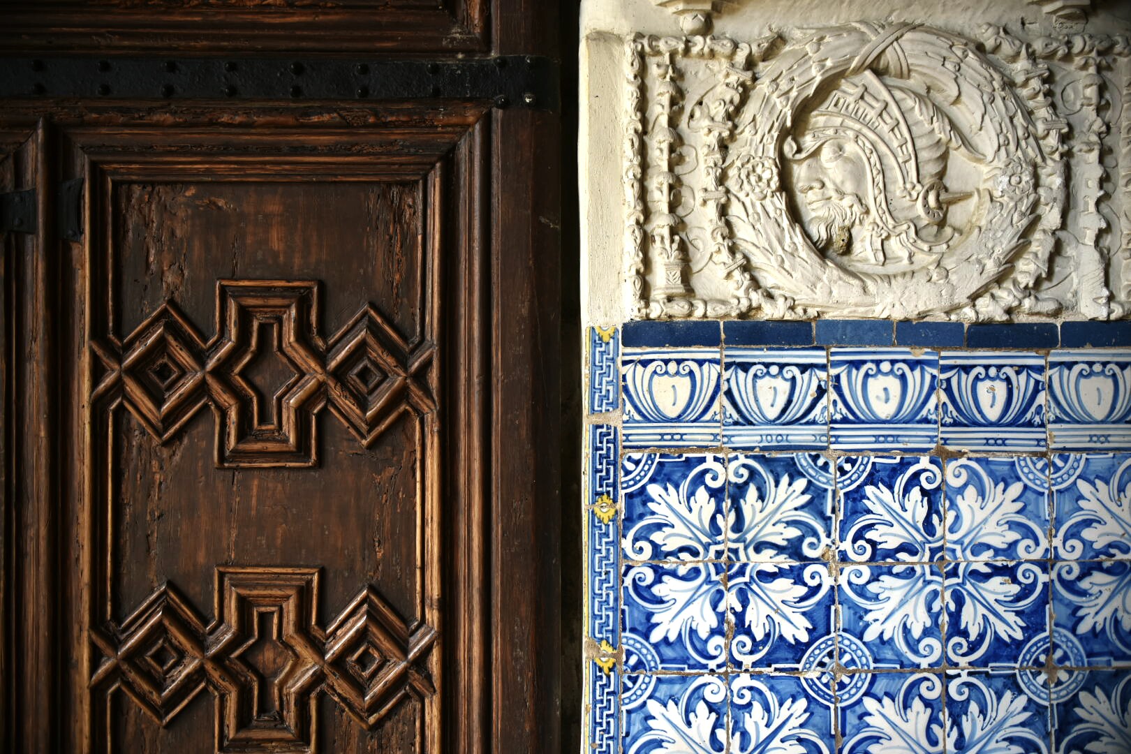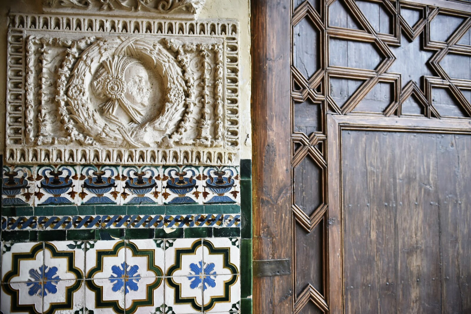 Cada detalle del palacio está muy cuidado. En este caso una de las puertas que dan a los salones interiores y los motivos decorativos en los azulejos.
