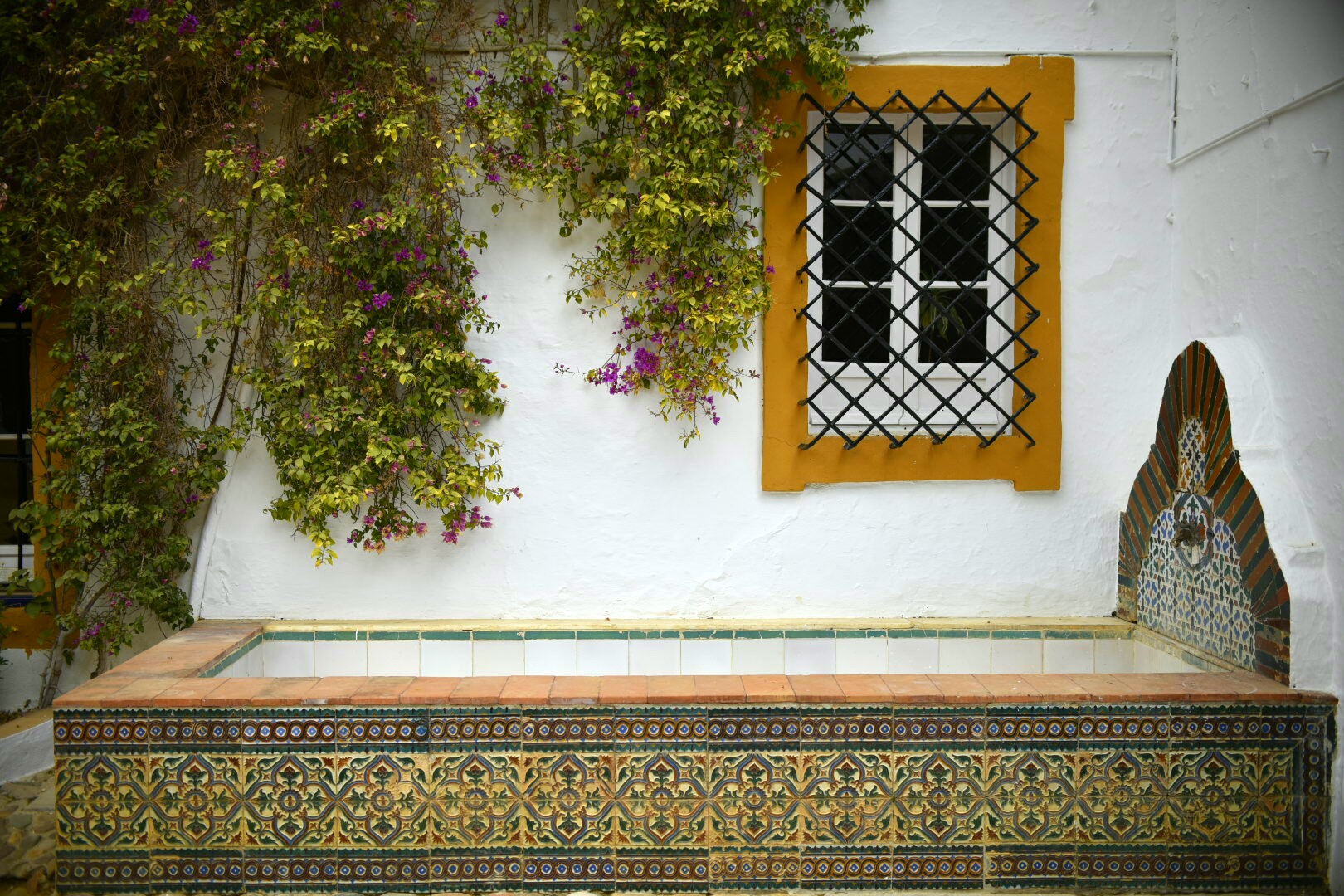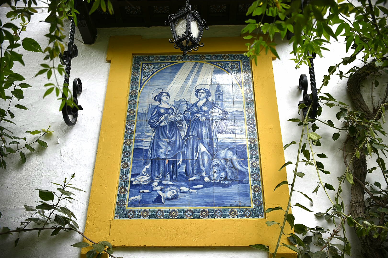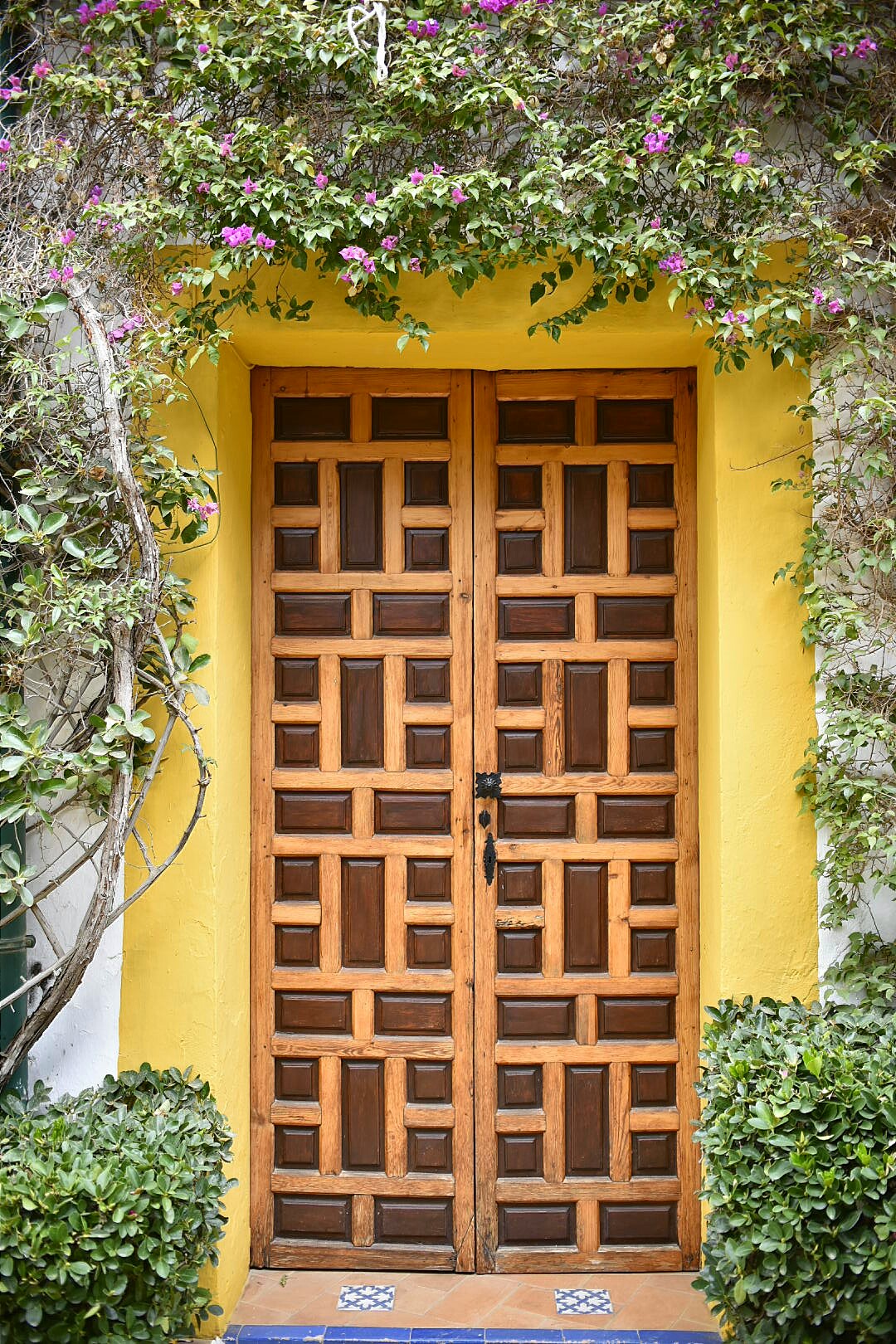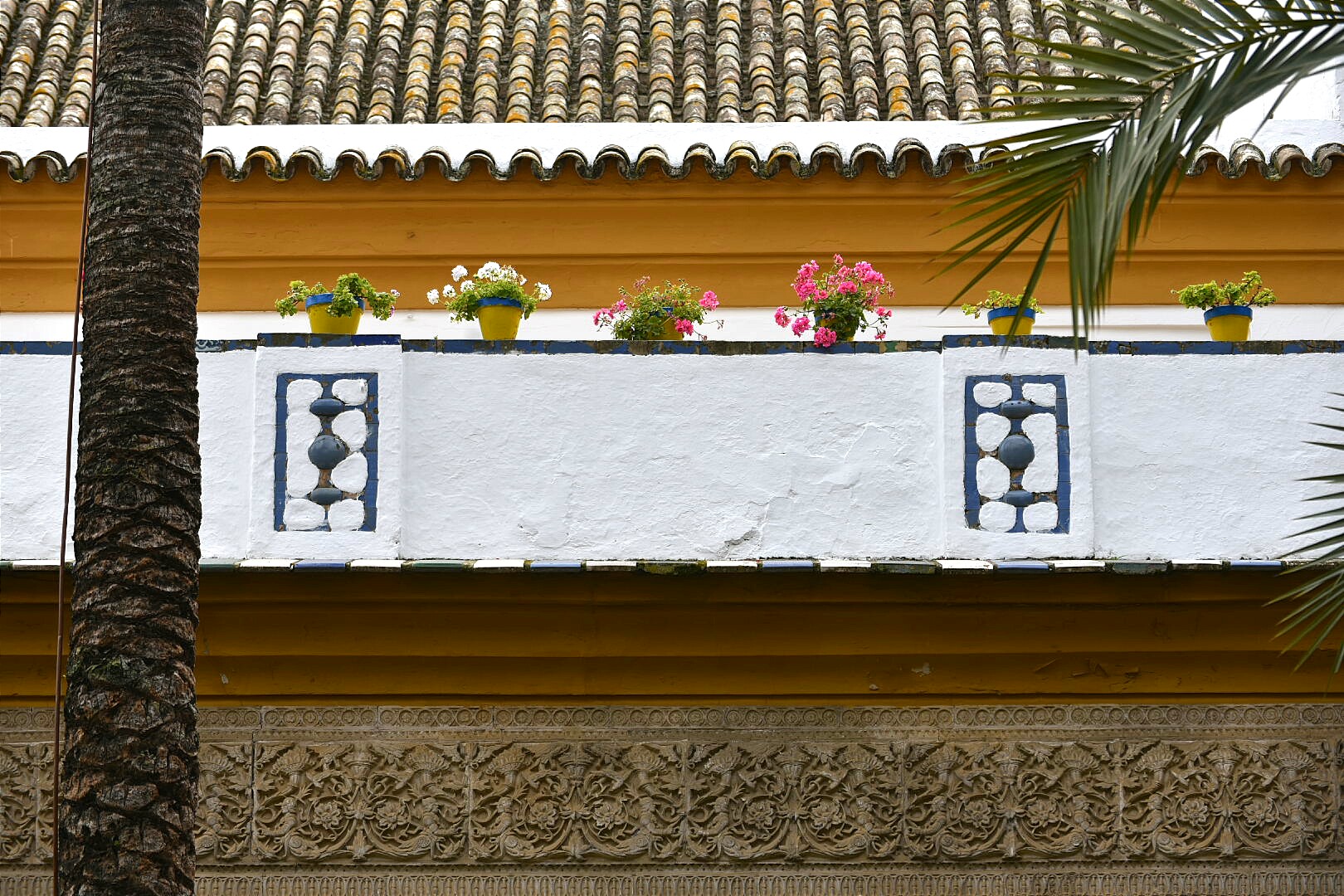 Cada detalle del palacio está muy cuidado. En este caso una de las puertas que dan a los salones interiores y los motivos decorativos en los azulejos.
