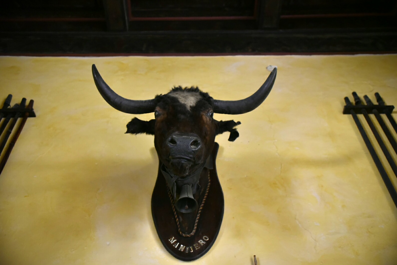 En una pequeña sala antes de la cochera se encuentras varias cabezas de toros brindadas en su día por los toreros más famosos a la Casa de Alba.