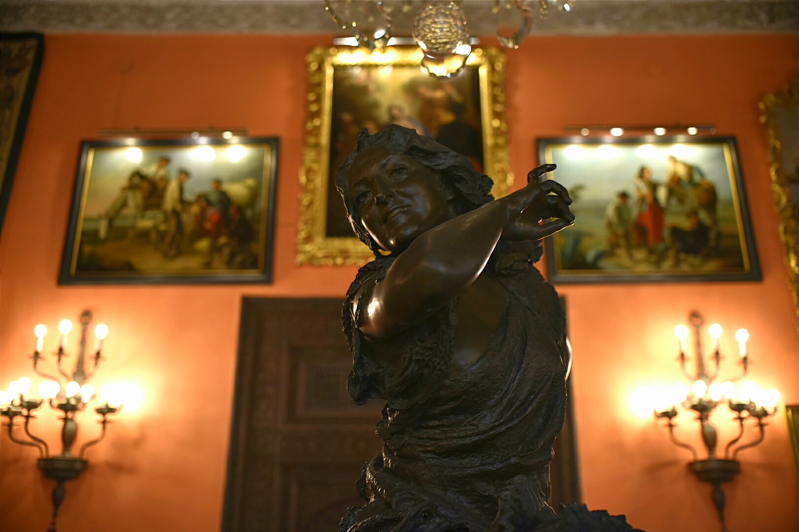 Salón de la Gitana, que toma el nombre de la escultura de bronce que preside la habitación obra del artista valenciano Mariano Benlluire.