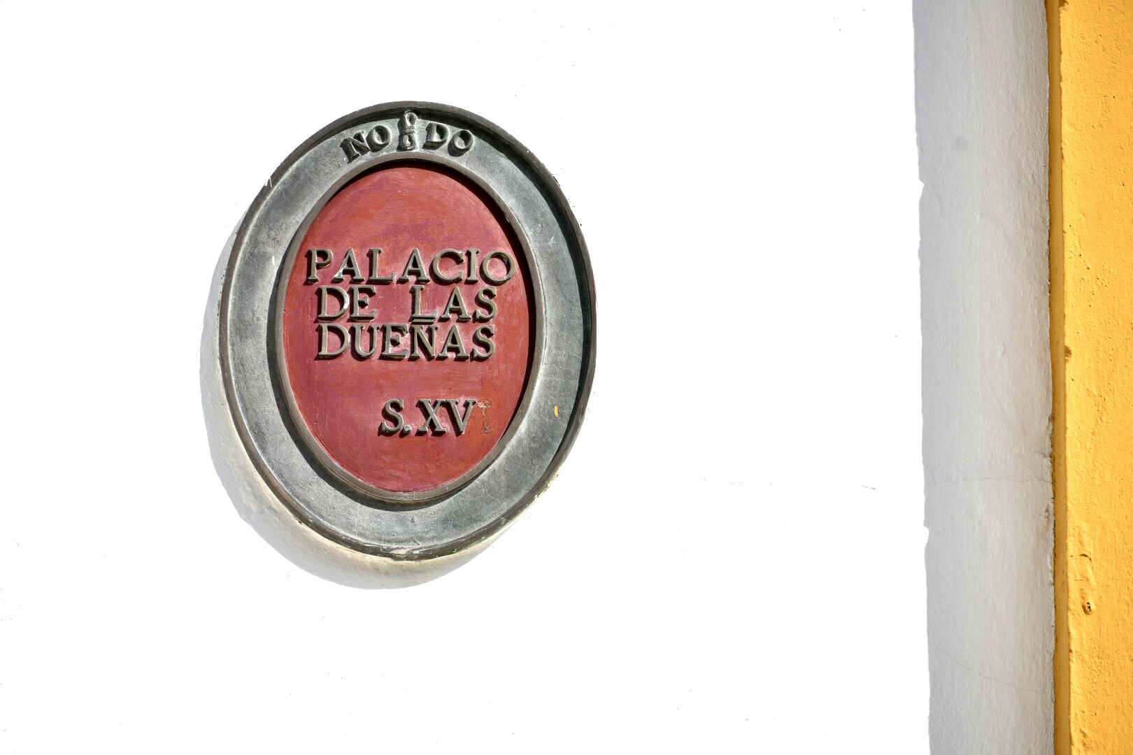 En la fachada, una placa con el nombre del palacio y el siglo de su construcción.