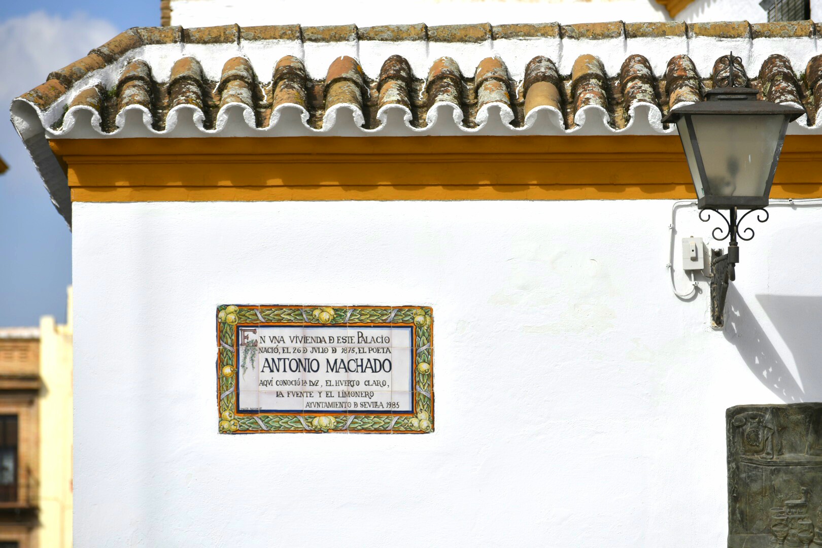 La placa en la esquina de la calle Las Dueñas indica el lugar donde nació el poeta Antonio Machado.