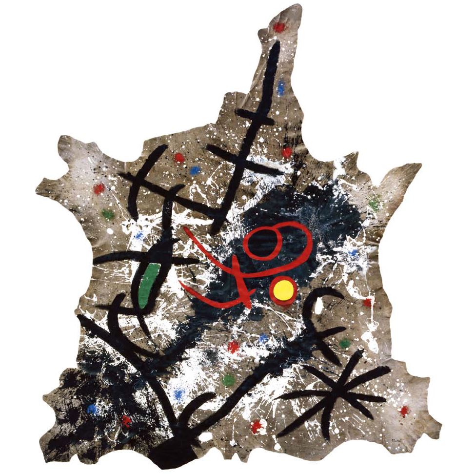 Joan Miró Les oiseaux de proie foncent sur nos ombres, 1970. Los pájaros de presa se extienden sobre nuestras sombras. Óleo sobre piel de vaca. 250 x 200 cm Colección Isabelle Maeght, París © Foto Galerie Maeght, París © Successió Miró, 2015