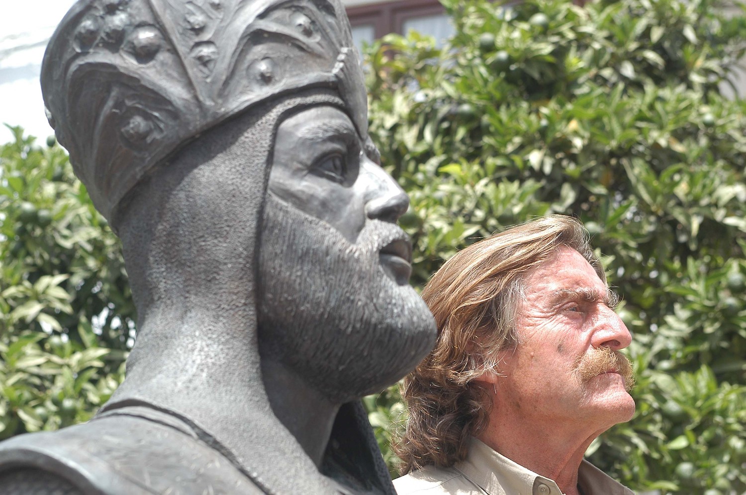 En 1979 creó el programa ‘Aventura 92’, luego denominada Ruta Quetzal –actualmente, Ruta BBVA por su patrocinador-. En la imagen, junto a la estatua de Almanzor en Málaga.