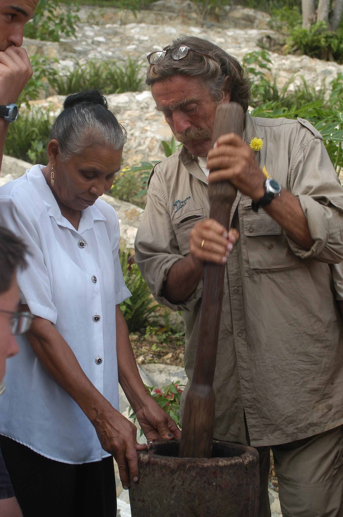Este programa fue declarado de Interés Universal por la Unesco. Consiste en intercambios entre jóvenes de 58 países para hacer viajes de estudio geográfico, histórico y medioambiental por América Latina. En la imagen, moliendo cacao en la República Dominicana.