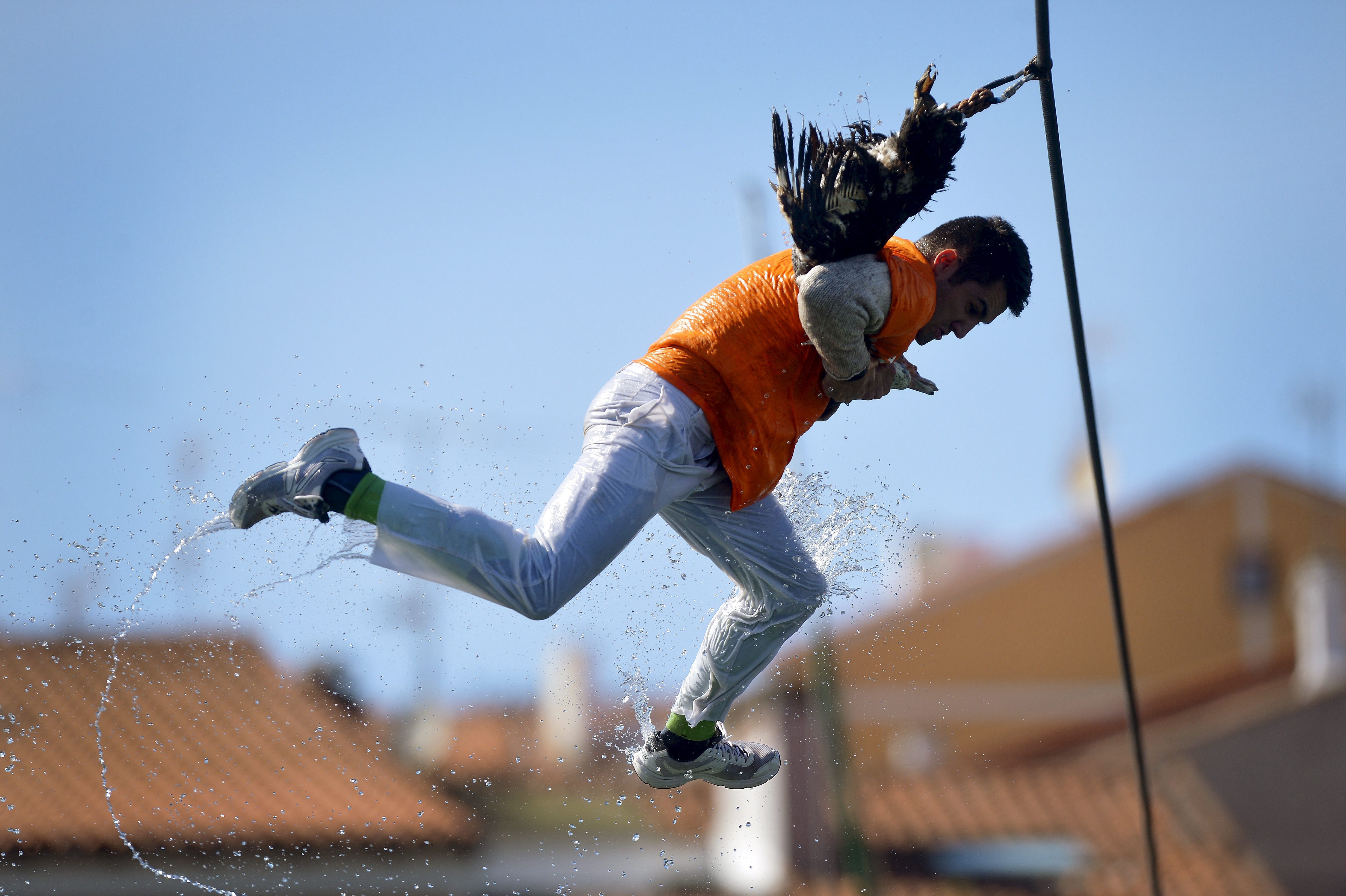 En Lequeitio, una localidad vizcaína, se celebra un festejo que consiste en intentar arrancar la cabeza de un ganso desde una barca en el puerto. Desde 1986 los gansos son sacrificados previamente.