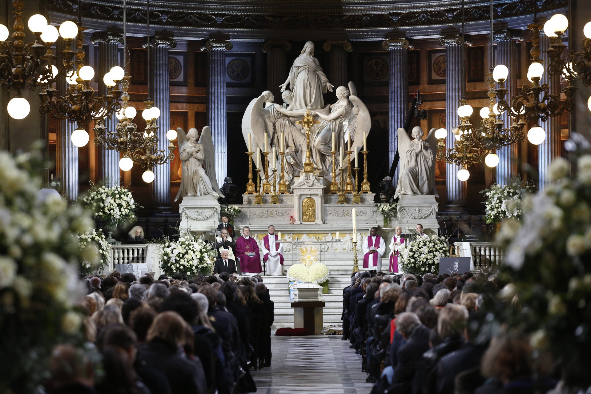 Imagen del féretro de Johnny Hallyday durante la ceremonia celebrada en la iglesia de La Madeleine, en París.