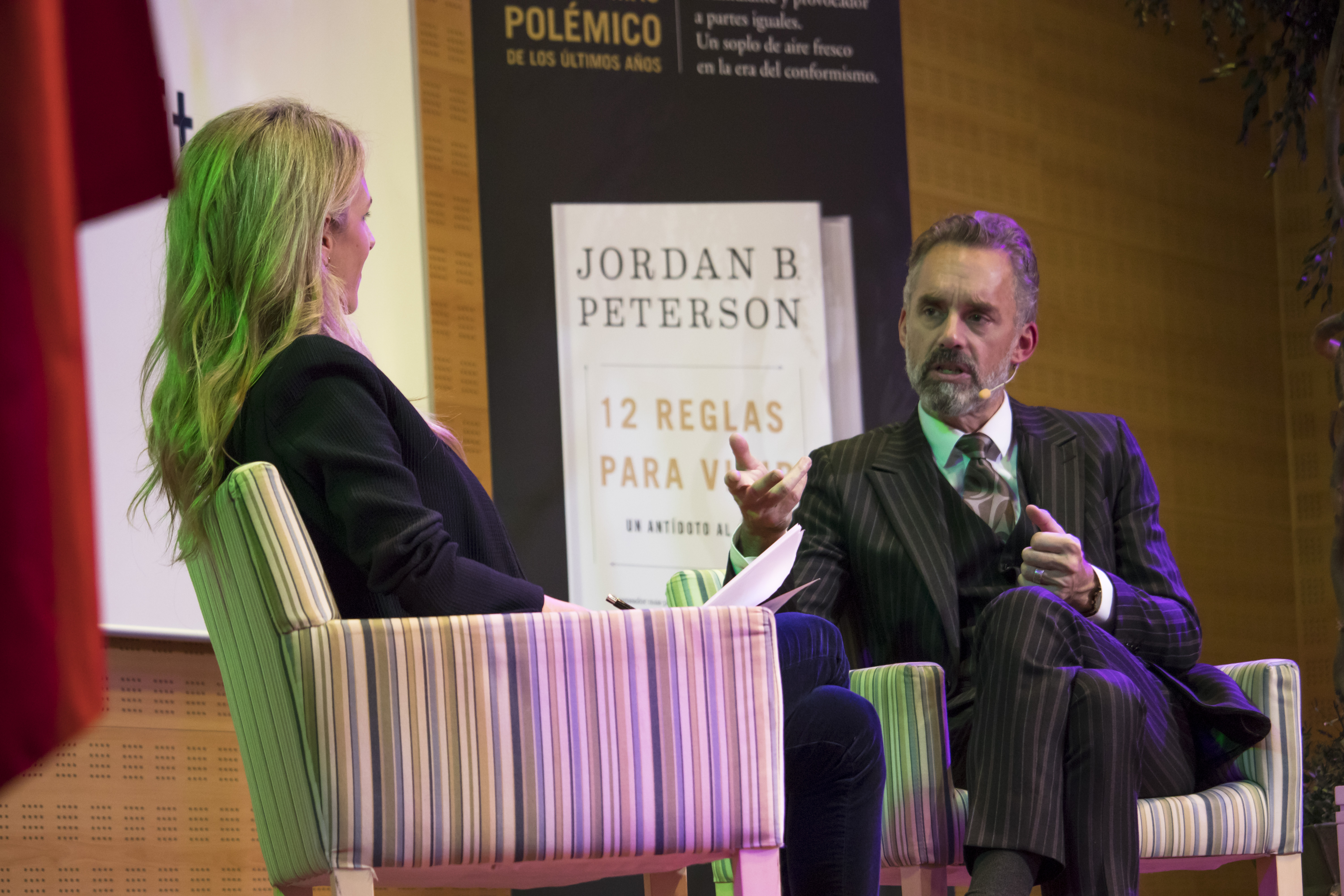 El primer capítulo (la primera regla) del libro se titula: "Enderézate y mantén los hombros hacia atrás". El penúltimo: "Deja en paz a los chavales que montan en monopatín" (¿y en patinete?). El último: "Si te encuentras un gato por la calle, acarícialo". El martes había cientos de jóvenes escuchándolo atentamente en la Universidad Francisco de Vitoria en Madrid. Muchos con el libro en las manos. Hombres y mujeres (menos, es verdad) escuchando el vehemente y eficaz discurso de Peterson (lo que contestaba vehementemente a Cayetana Álvarez de Toledo). Y 350.000 personas por streaming.