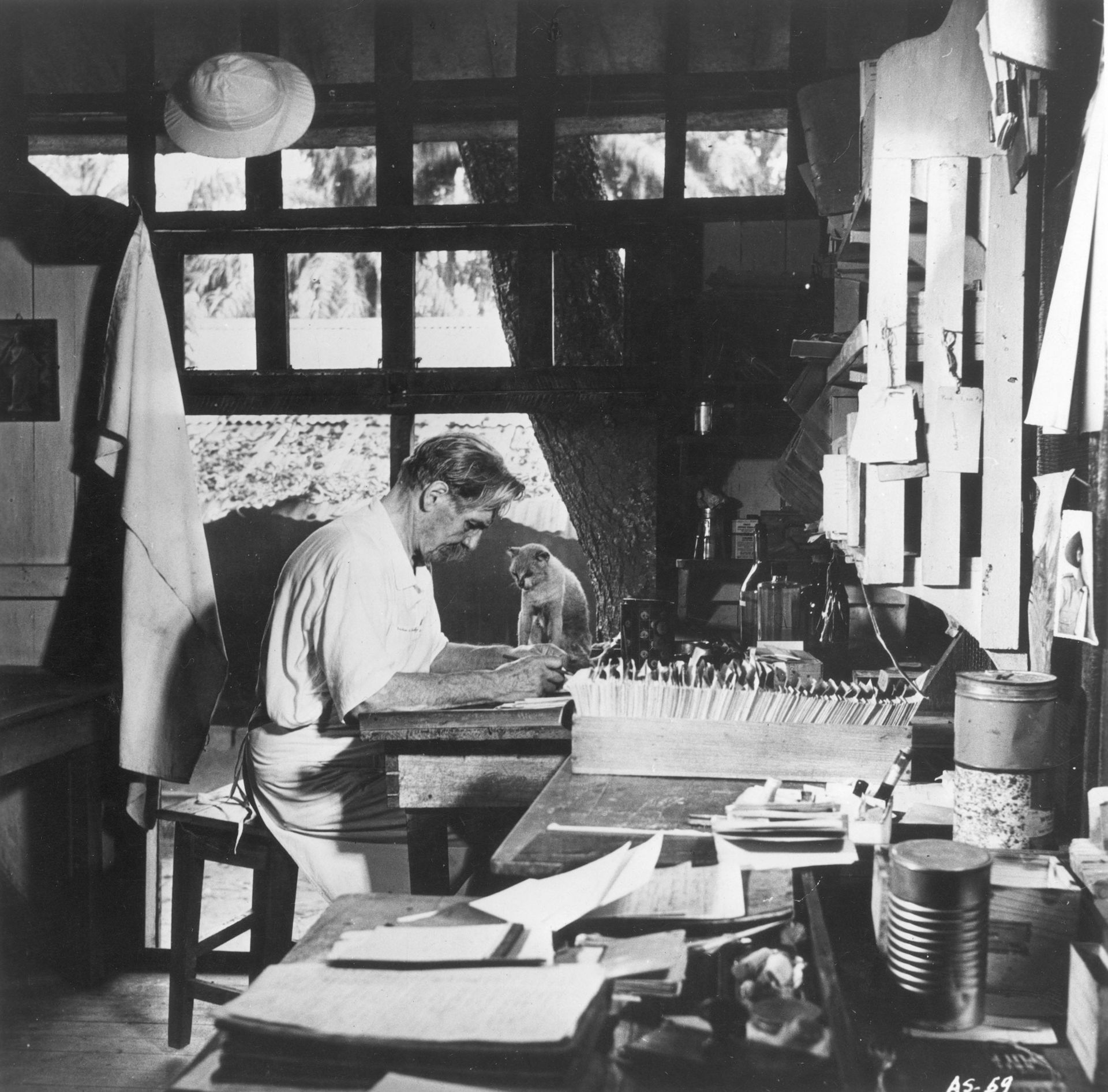 Albert Schweitzer, Premio Nobel de la Paz en 1952, contó con la compañía permanente de su gato en su estudio.