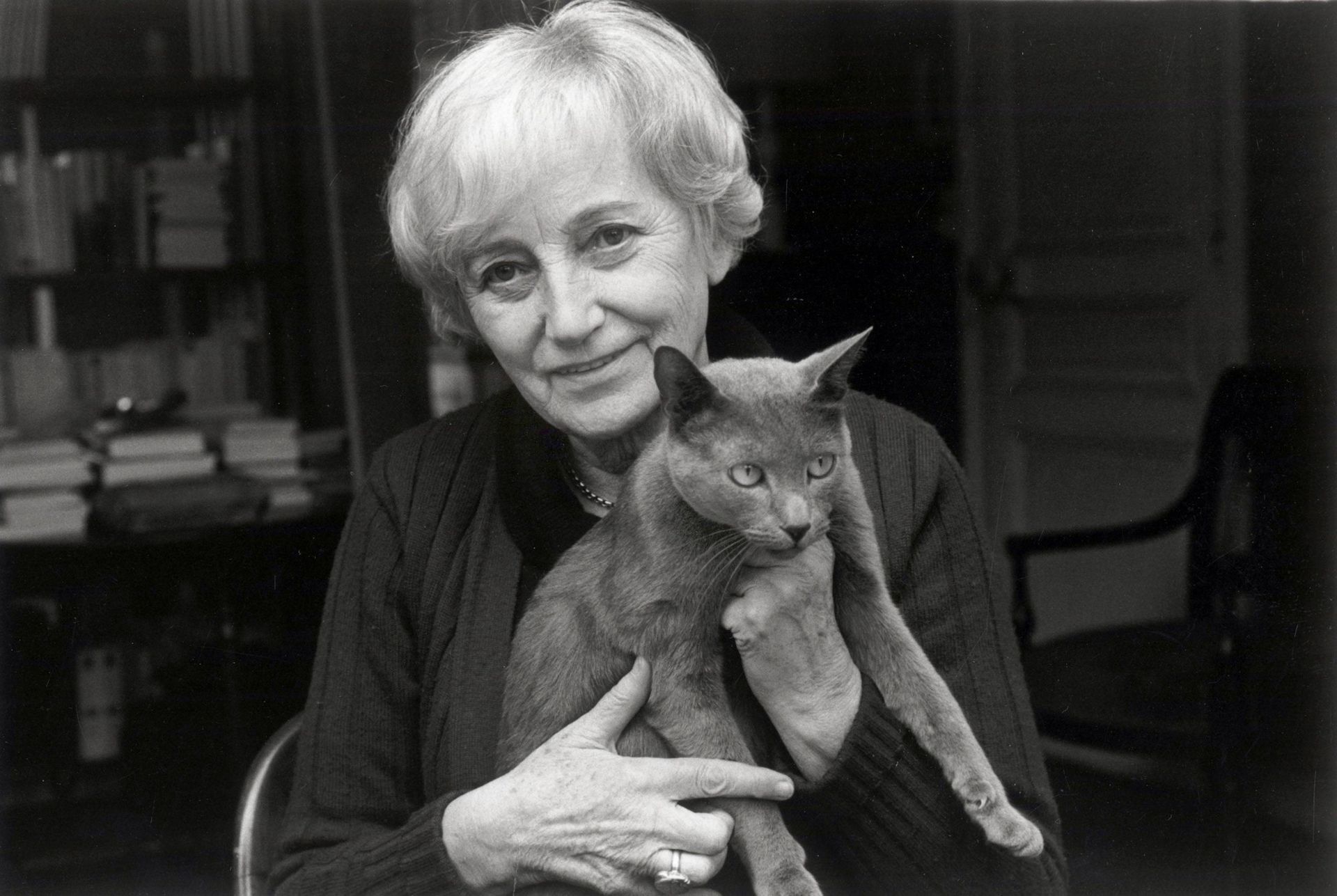 Dominique Aury, intelectual y escritora francesa, también amó a los gatos y posó en numerosas ocasiones junto a ellos. Esta imagen es de 1986.