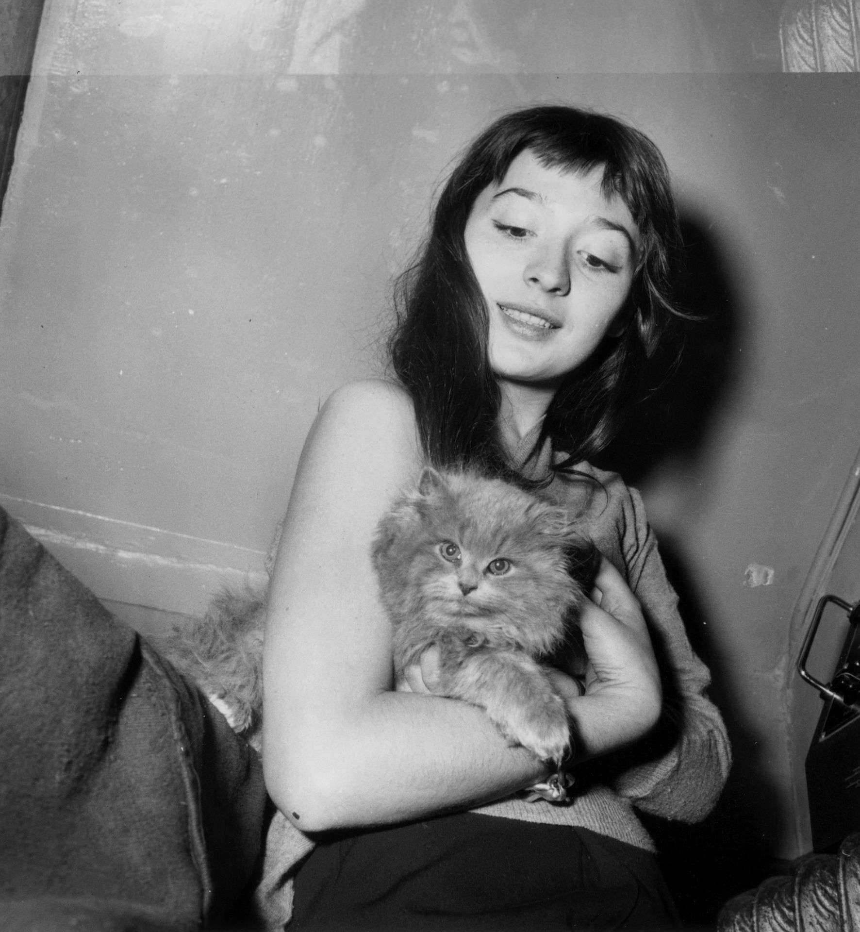 Marie-Juliette Gréco, cantante y actriz francesa, posó en 1949 con su gato.