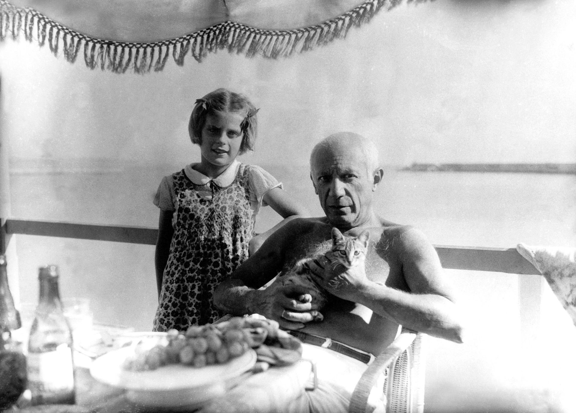 El amor del artista malagueño por los gatos quedó reflejado en muchas de sus obras. En esta imagen, Picasso posa junto a su hija y su gato Minou, un gato callejero francés que adoptó, en 1946.