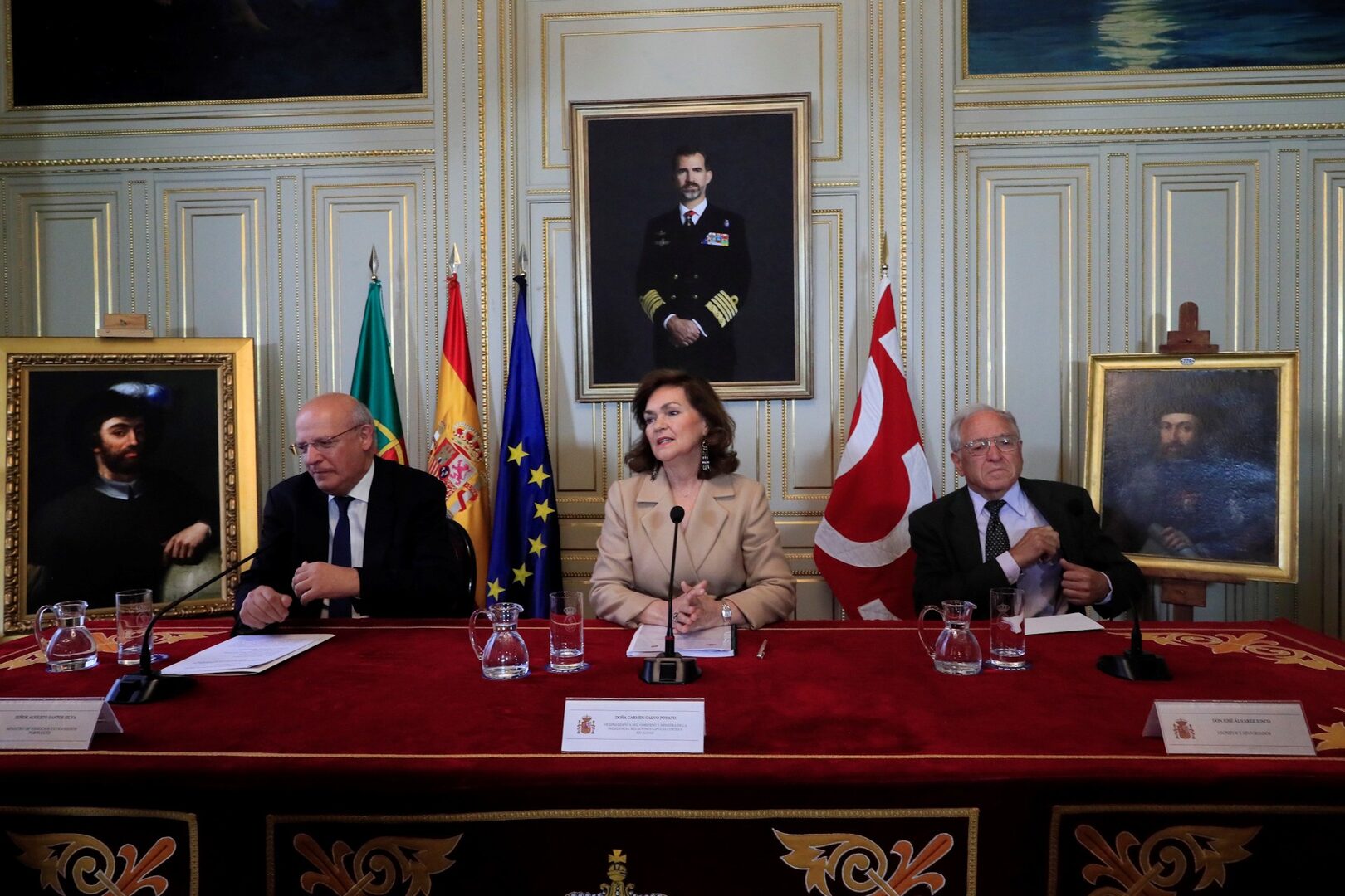 Así lo han presentado este lunes por la mañana la vicepresidenta del Gobierno, Carmen Calvo, y el ministro portugués de Negocios Extranjeros, Augusto Santos Silva, en un acto en el Cuartel General de la Armada, donde han estado apoyados por la ministra de Defensa, Margarita Robles, y el ministro de Cultura, José Guirao. Y así lo presentaban horas después los mismos dos protagonistas en Lisboa, la capital portuguesa.