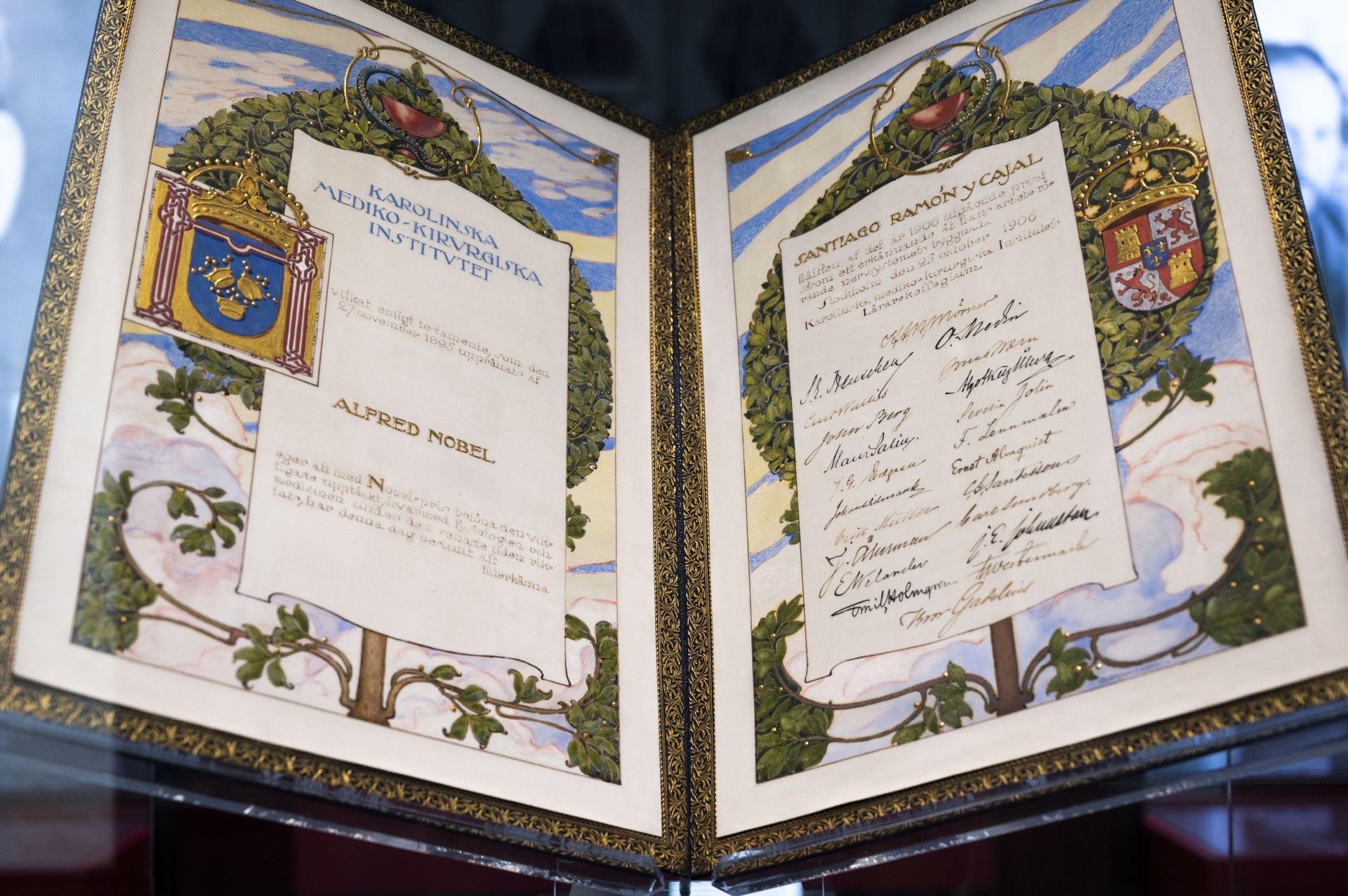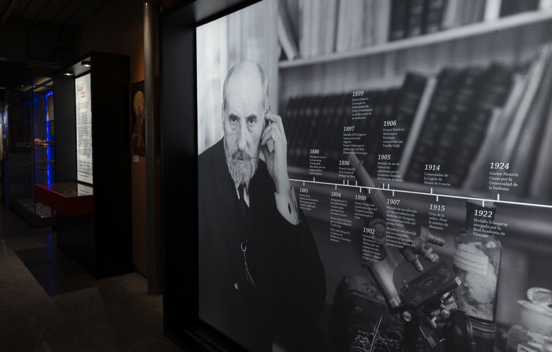 Se exponen piezas clave en su legado como el diploma y la medalla del premio Nobel en Fisiología o Medicina, concedido en 1906, junto a Camillo Golgi.