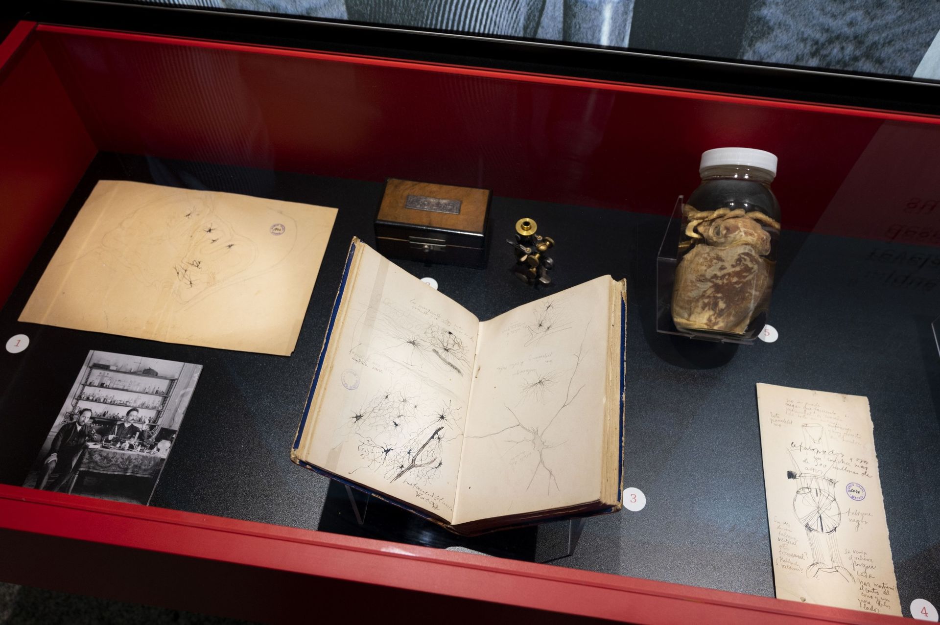 Entre el centenar de objetos relacionados con el genio español, destaca su primer diario de laboratorio, en el que el visitante podrá descubrir sus primeros dibujos de células nerviosas, expuesto en escasas ocasiones.