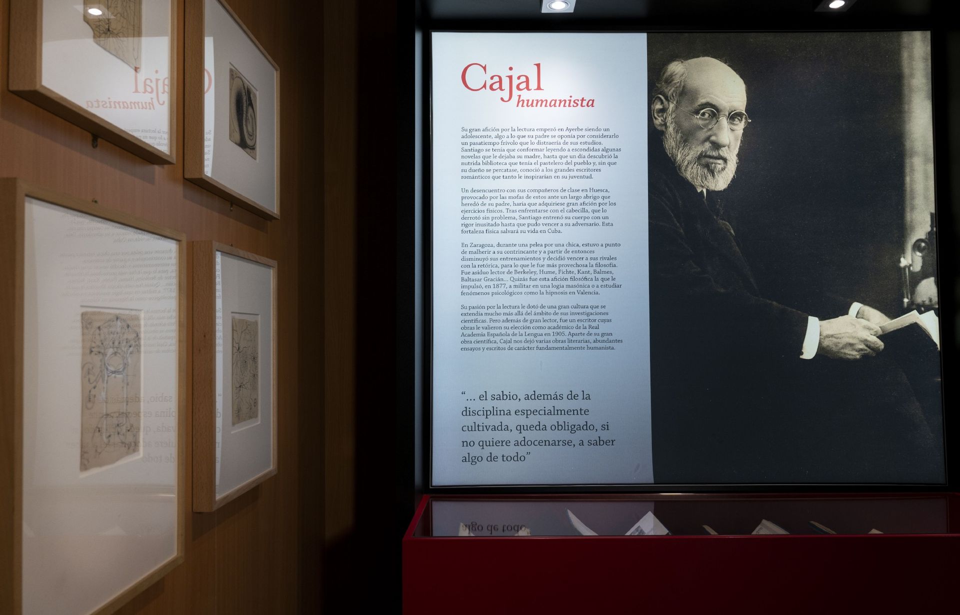 La muestra ahonda en la faceta humanística de Santiago Ramón y Cajal a partir de un conjunto de vitrinas temáticas. El objetivo del CSIC Cajal es trasmitir por qué es uno de los científicos más admirados y respetados del mundo.