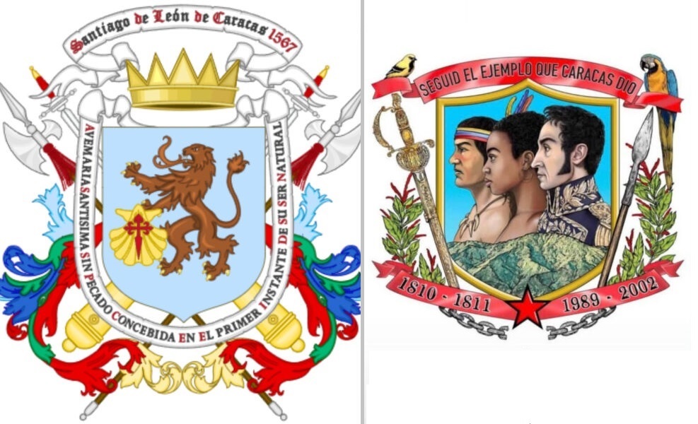 Caracas ha aprobado la sustitución del escudo de armas otorgado a la ciudad en 1591 por uno nuevo con símbolos diferentes para eliminar el legado español. En el nuevo escudo aparece la efigie del Libertador Simón Bolívar junto a mujer de raza negra y un indígena, acompañados de las fechas clave de la Revolución Bolivariana.