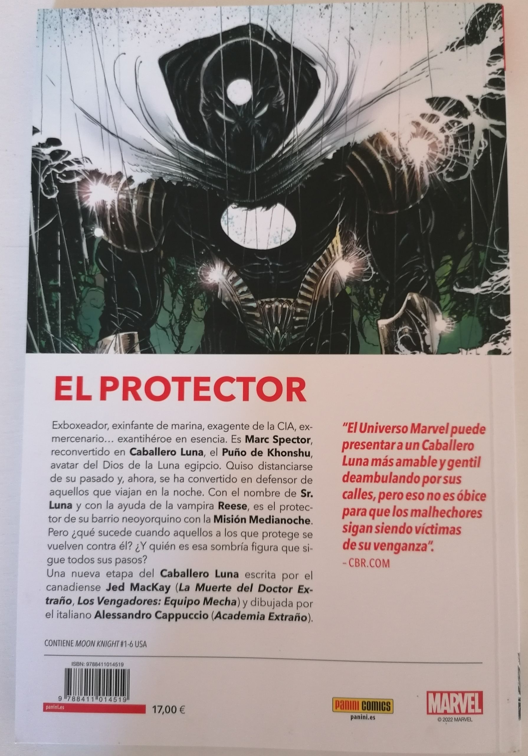 El Puño de Khonshu, dios egipcio de la luna y la venganza, está de vuelta gracias a la editorial Panini y Marvel Cómics, que ponen a nuestra disposición un tomo con 144 páginas a un precio de 17 euros. Edición rústica, de tapa blanda y con una interesante aventura sobre un personaje, conocido para los amantes del cómic, pero aún en proceso de exploración para aquellos que han descubierto su existencia a través de la serie de Disney Plus.