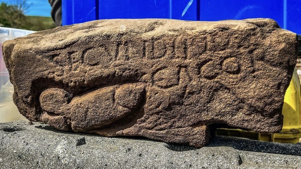 La piedra, que mide 40 centímetros de ancho y 15 cm de alto, fue descubierta el 19 de mayo en Vindolanda. En estas ruinas fueron excavadas las celebradas tablillas de Vindolanda, en el momento de su descubrimiento, los documentos manuscritos más antiguos existentes en Gran Bretaña.