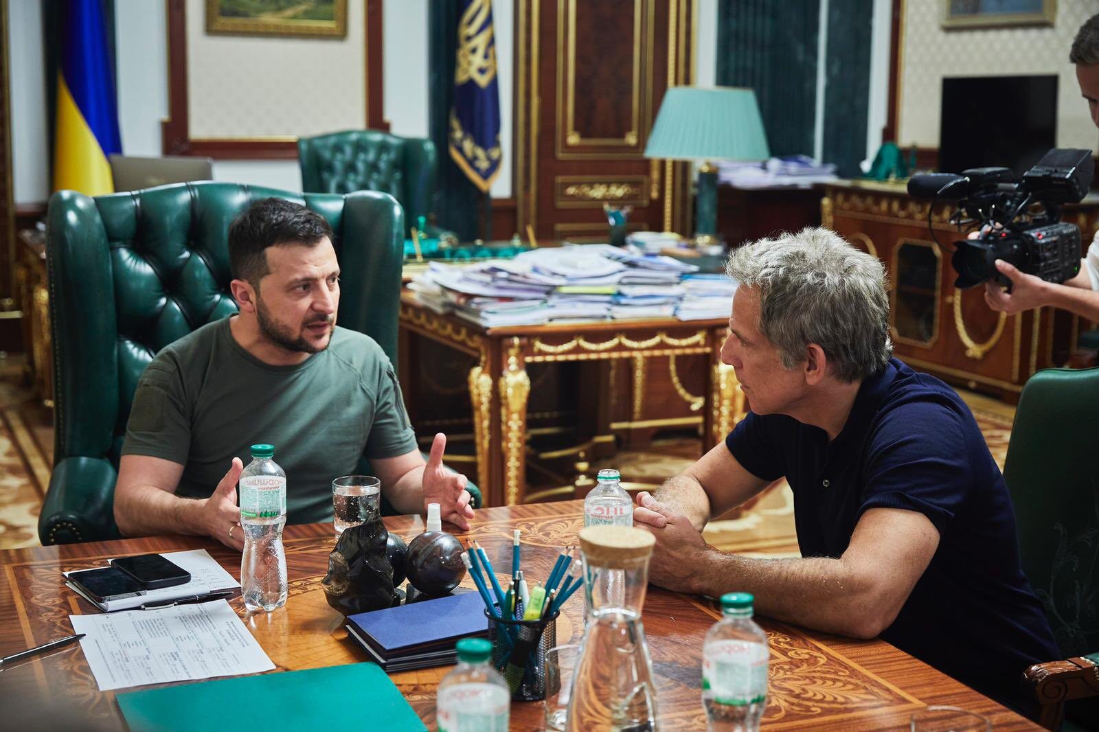 El actor estadounidense Ben Stiller visitó Kiev en calidad de embajador de buena voluntad de ACNUR. En su encuentro con el presidente de Ucrania, Volodimir Zelensky, le mostró su admiración por la gestión llevada a cabo desde la invasión de Rusia. "Eres mi héroe", le dijo en el Palacio de Gobierno.