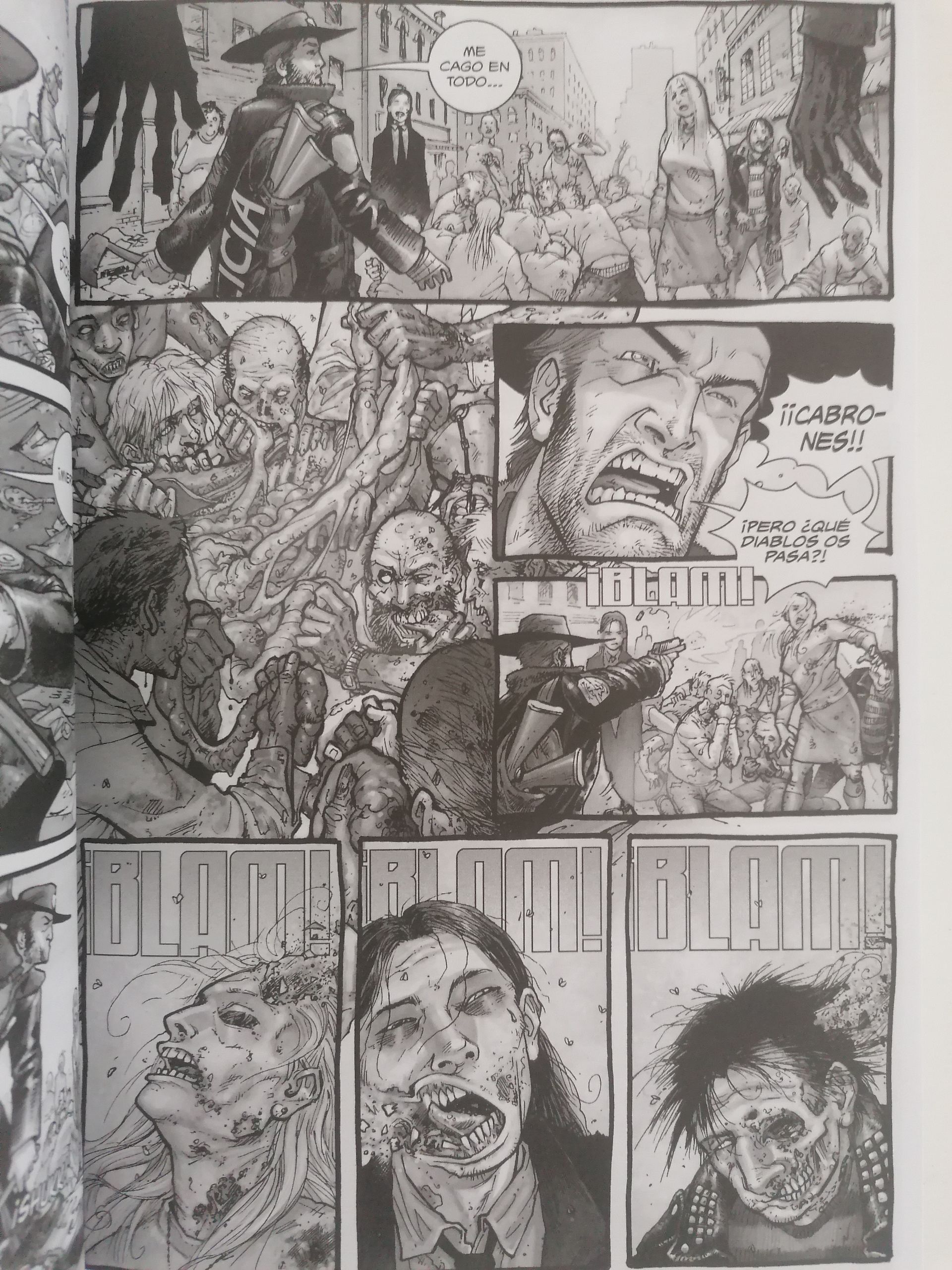 ¿Qué diferencias hay con la serie? Aunque bueno, lo suyo sería decirlo al revés, porque el cómic fue antes que la televisión. Dejemos ese detalle a un lado. Para mí hay una fundamental y es el ritmo narrativo. El cómic es entretenido y con un ritmo alto todo el rato. No baja la intensidad. Va al grano. No hay un momento de respiro y cuando lo hay sabes que al pasar la página te puedes encontrar con un gran viñeta que destrozará la poca calma que los personajes habían logrado encontrar. Incluso cuando los bocadillos de diálogos aumentan considerablemente su tamaño, la calidad de las conversaciones no reduce el ritmo sino que le da más profundidad. Esa diferencia, en mi opinión, hace que el cómic sea muy difícil de dejar de leer mientras que la serie, en muchas temporadas, invitaba al abandono.