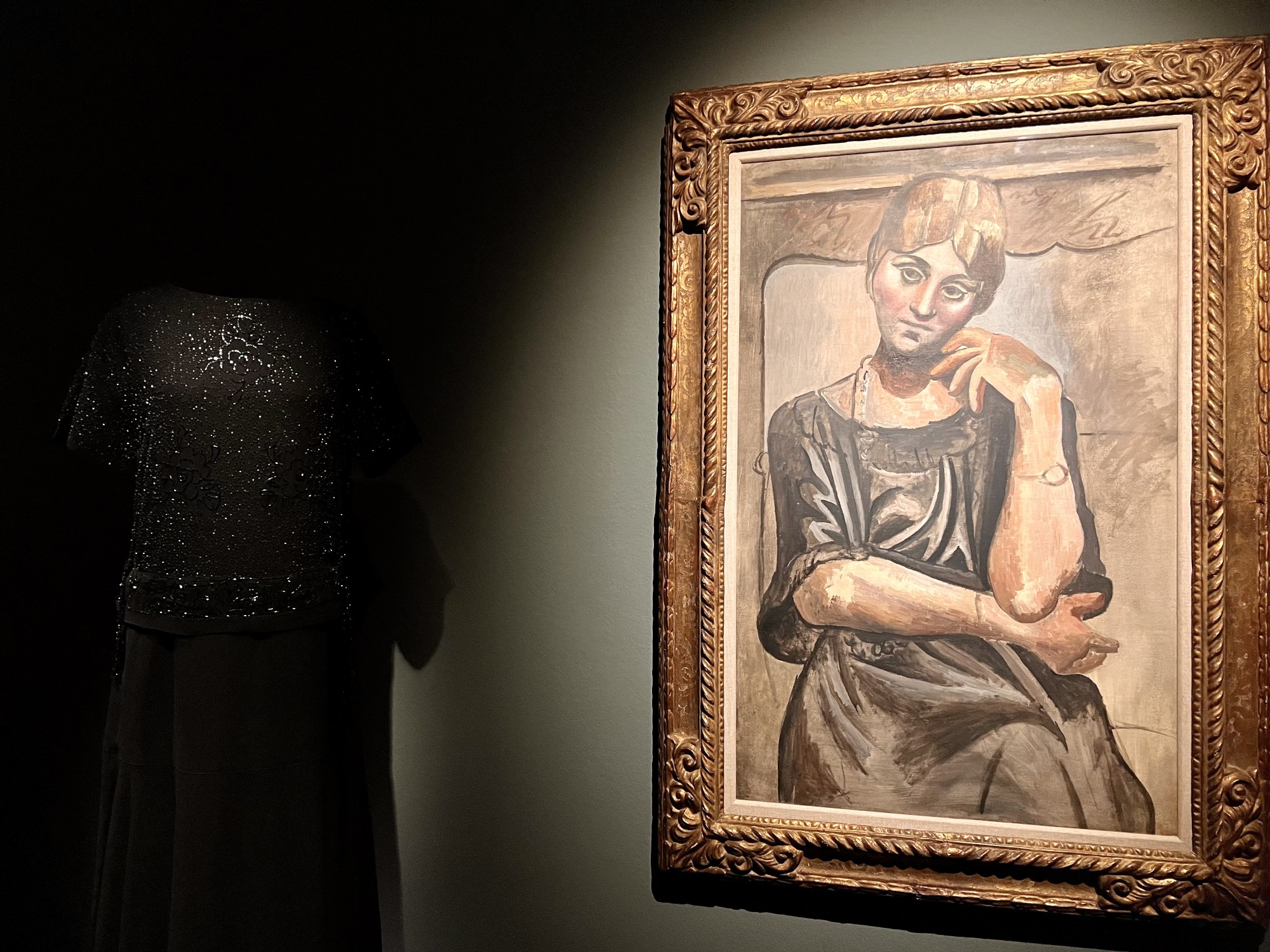 Otra de las secciones está dedicada a Olga Picasso, la primera mujer del artista, bailarina rusa y devota clienta de Chanel. Los retratos de Olga dialogan con algunos vestidos de este periodo inicial de la diseñadora francesa. Chanel frecuentó con asiduidad al matrimonio Picasso. De hecho, posiblemente, diseñó el vestido de novia de Olga. La bailarina ocupó su armario con muchos diseños de Chanel, como se aprecia en fotografías y películas caseras, algunas presentes en la exposición.