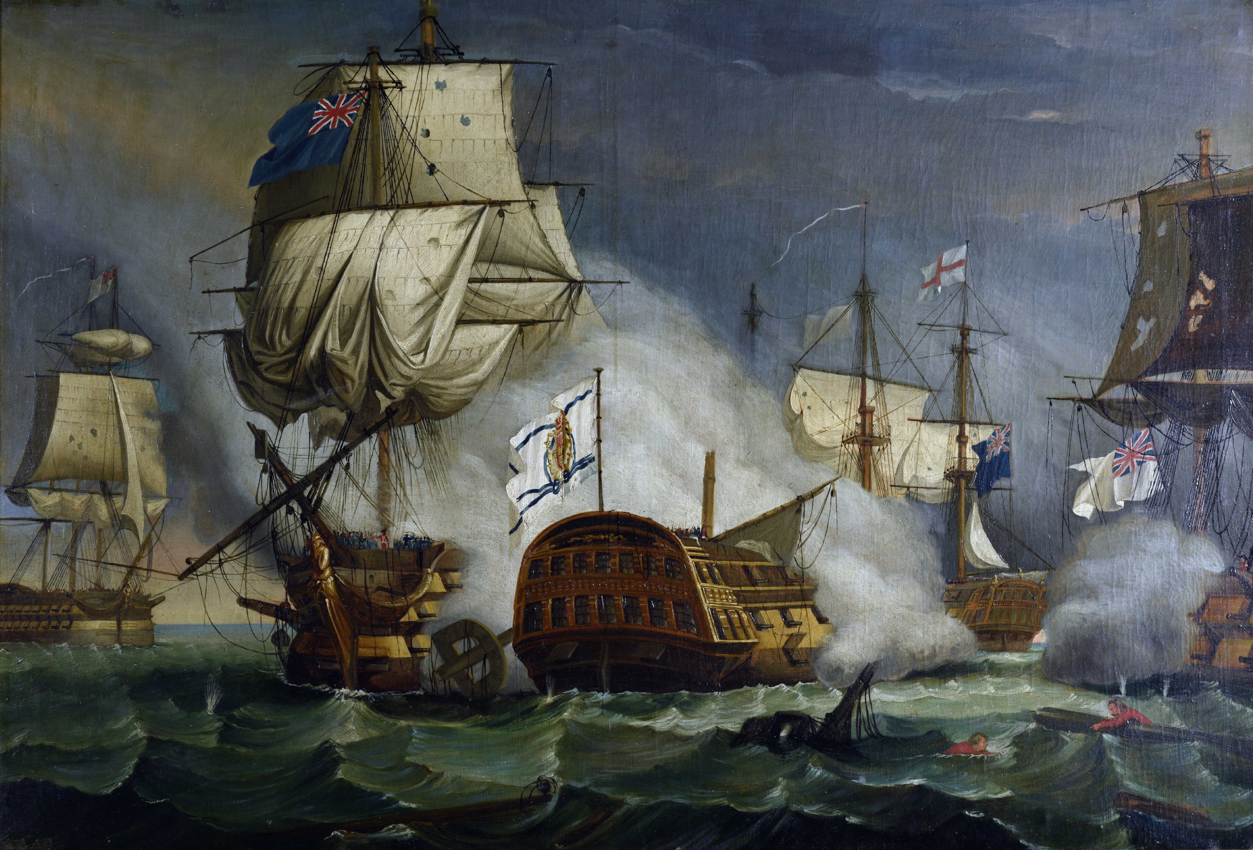 En 1779 España firmó con Francia el Tratado de Aranjuez, por el cual entró de forma abierta en la guerra por la independencia de las Trece Colonias. Entre sus objetivos estaban también los propios de cada nación, incluidos arrebatar a Inglaterra Gibraltar, Menorca y la Florida. La exposición se detiene en los grandes marinos españoles que fueron protagonistas, a través de retratos, diarios de navegación, modelos de buques y armas que utilizaron.