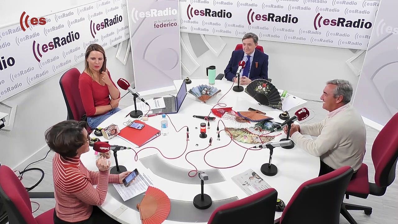Federico, Isabel González y Ayanta Barilli hablan con Javier Llerandi, de la tienda de abanicos Casa de Diego.