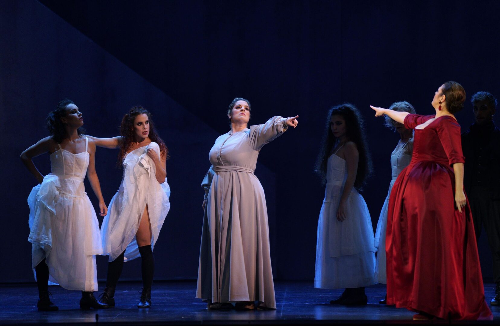 La tan criticada actualización de los libretos habría sido oportuna en este caso: la trama folletinesca de conspiraciones y favoritismos en el Madrid de Carlos IV es larga y fatigosa de seguir, en parte por la multitud de personajes históricos y ficticios que por allí se pasean. Un tijeretazo o reescritura habría ayudado a sortear este escollo. Otro problema es la gran cantidad de ideas e ingredientes extra que se han añadido al montaje, con constantes referencias a los caprichos de Goya, abundancia de proyecciones y bailarines y figurantes cuyo cometido -fea costumbre que parece importada del Teatro Real- parece ser más distraer que ambientar y enriquecer. En conjunto, una sobredosis de estímulos que ensucian la escena y pierden al respetable.
