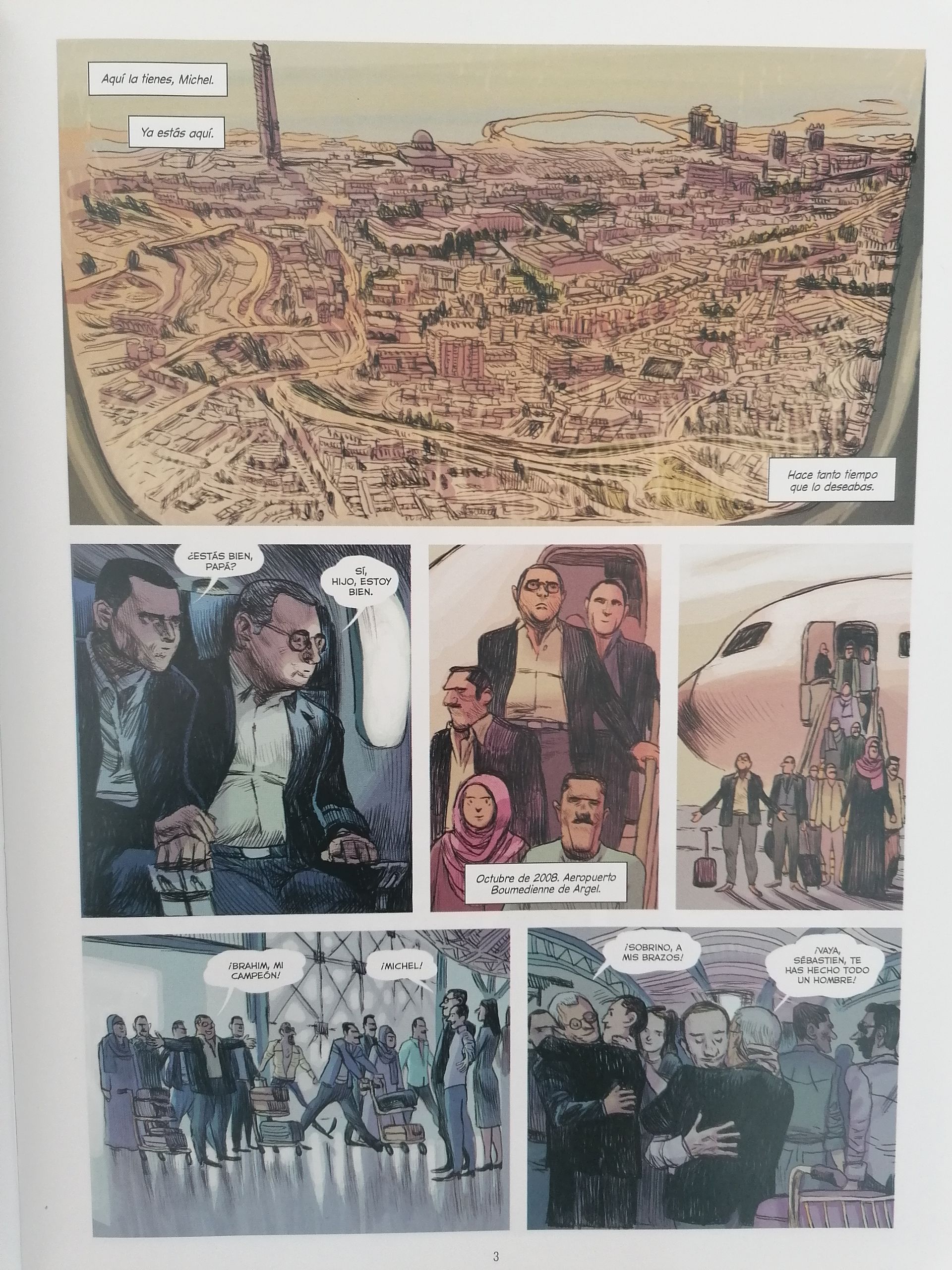 ‘A brazo partido’ es en primer término un cómic biográfico sobre la carrera en el boxeo de los hermanos Acariès, pero más allá de ese tema principal, este relato no es solo un ejercicio centrado en la temática deportiva sino que va más allá del cuadrilátero ofreciendo una historia llena de vida. El guion nos va a situar primero en Argel, hogar de ambos hermanos y trampa casi mortal para ellos cuando se desata la guerra. Posteriormente llegarán a Francia, donde arrancará la carrera de Louise como boxeador y los inicios de Michel como promotor. Y finalmente, la historia nos irá llevando por diferentes lugares del mundo siguiendo la carrera de Louise, siempre acompañado por su padre y por su hermano. Ese toque familiar, constante durante toda la narración, es lo que le da a esta historia un punto más de nivel y sobre todo un toque humano detrás de los focos de los combates de boxeo.