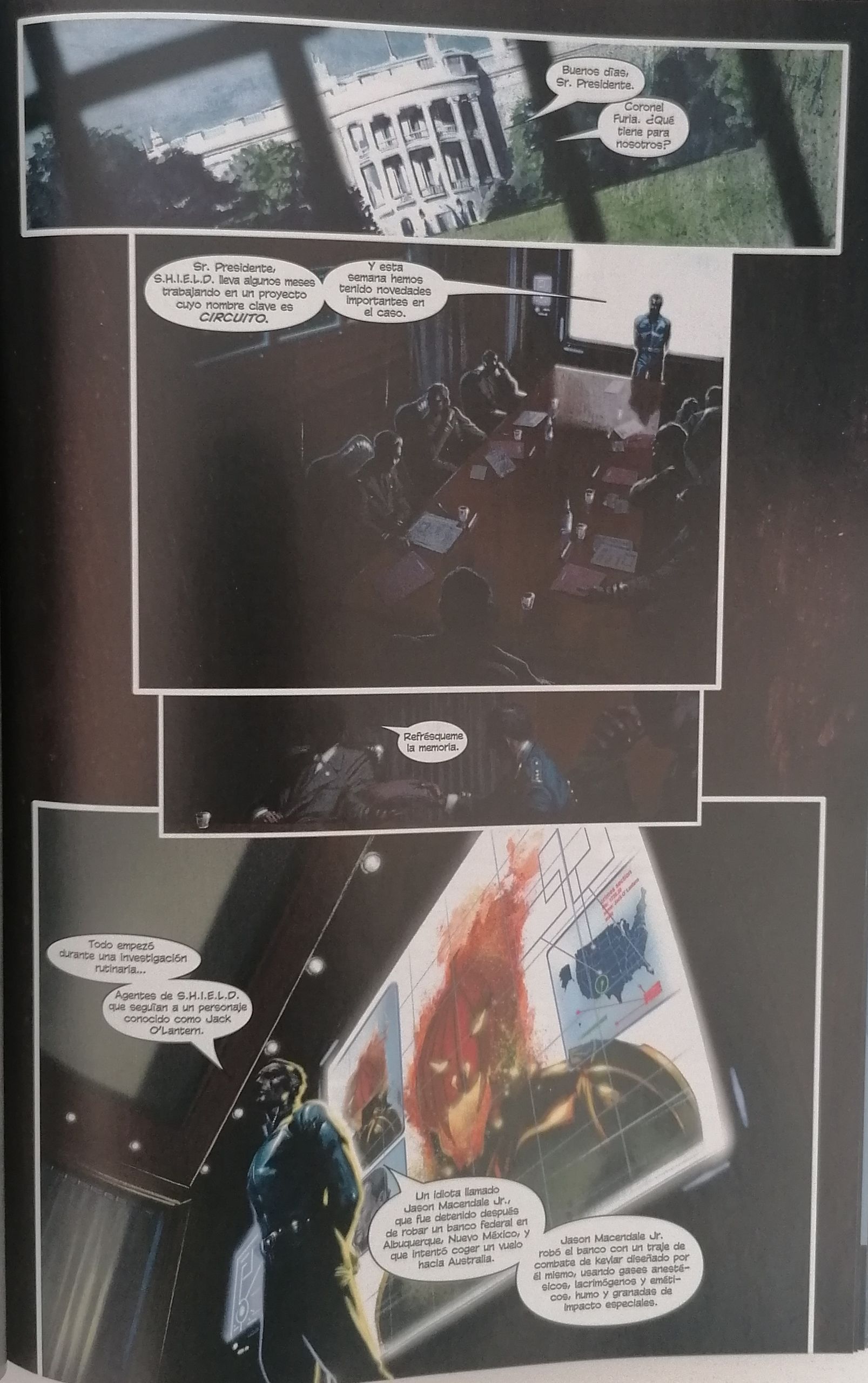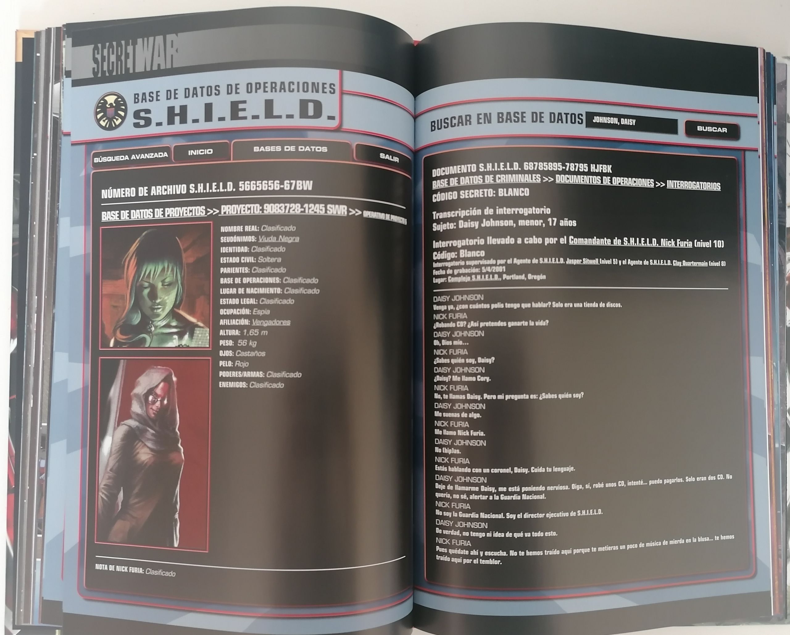 El guion de Bendis, como es habitual en él, te lleva de forma fluida por la historia y puedes hincarle el diente a este cómic en una sola tarde o en una sola mañana. La historia te atrapa y sin ser tampoco demasiado enrevesada, o totalmente imprevisible, sí tiene algún que otro giro interesante propio de un thriller de espías. La parte de entretenimiento la cumple de manera sobresaliente y además incorpora detalles que uno agradece como amante del género de espías, como son por ejemplo las transcripción de los interrogatorios. También tendremos a nuestra disposición el acceso a los archivos de S.H.I.E.L.D y podremos ver las fichas de todos los personajes de la historia incluyendo las valoraciones del propio Furia. Son detalles, pequeños, pero muy enriquecedores para el ambiente oscuro y secreto de la historia.